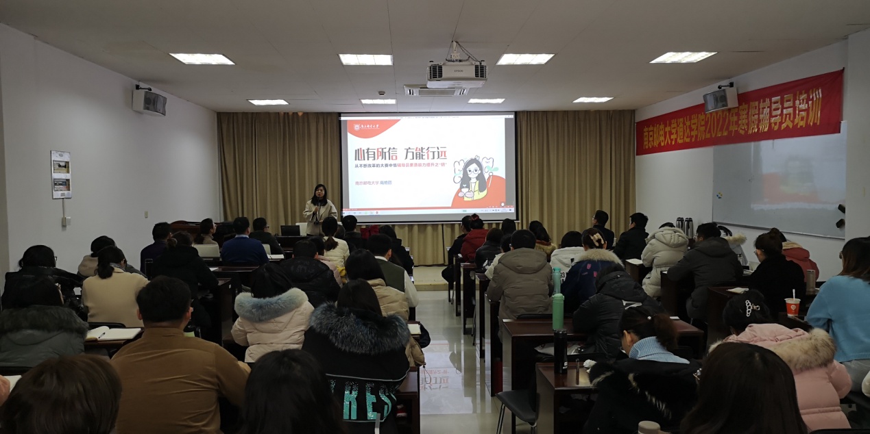 上午的培训由今年会官网党委副书记兼副院长王楷主持。南京邮电大学学工处副处长吴波作了《立德树人——辅导员思政工作经验交流》专题报告,他结合多年学生工作经验,从“七大育人工程”出发深入浅出的阐述了做好大学生思想政治工作的意义和作用。南邮招生就业处就业创业管理科科长王新涛作了《新形势下提升高校毕业生就业工作实效性的思考》专题报告,他从历年升学就业数据出发,结合自身就业工作经验,分析了学生就业升学中可能出现的各种情况,并从就业工作的效度、温度、厚度、力度四个方面给辅导员做好就业工作提供了方向。第十三届全国“高校辅导员年度人物提名奖”、第八届全国高校辅导员素质能力大赛一等奖、2021年江苏省“最美高校辅导员”、第八届江苏高校辅导员素质能力大赛一等奖获得者,南邮外国语学院分团委书记高艳丽作了《从不断改革的大赛中悟辅导员素质能力提升之“钥”》专题报告,她从辅导员素质能力大赛历年改革的角度出发,提出做好辅导员工作要注重深耕细作,加强学习和交流,不断提升自我,更要有对辅导员岗位的高度认同,才能适应社会对辅导员越来越高的要求。
