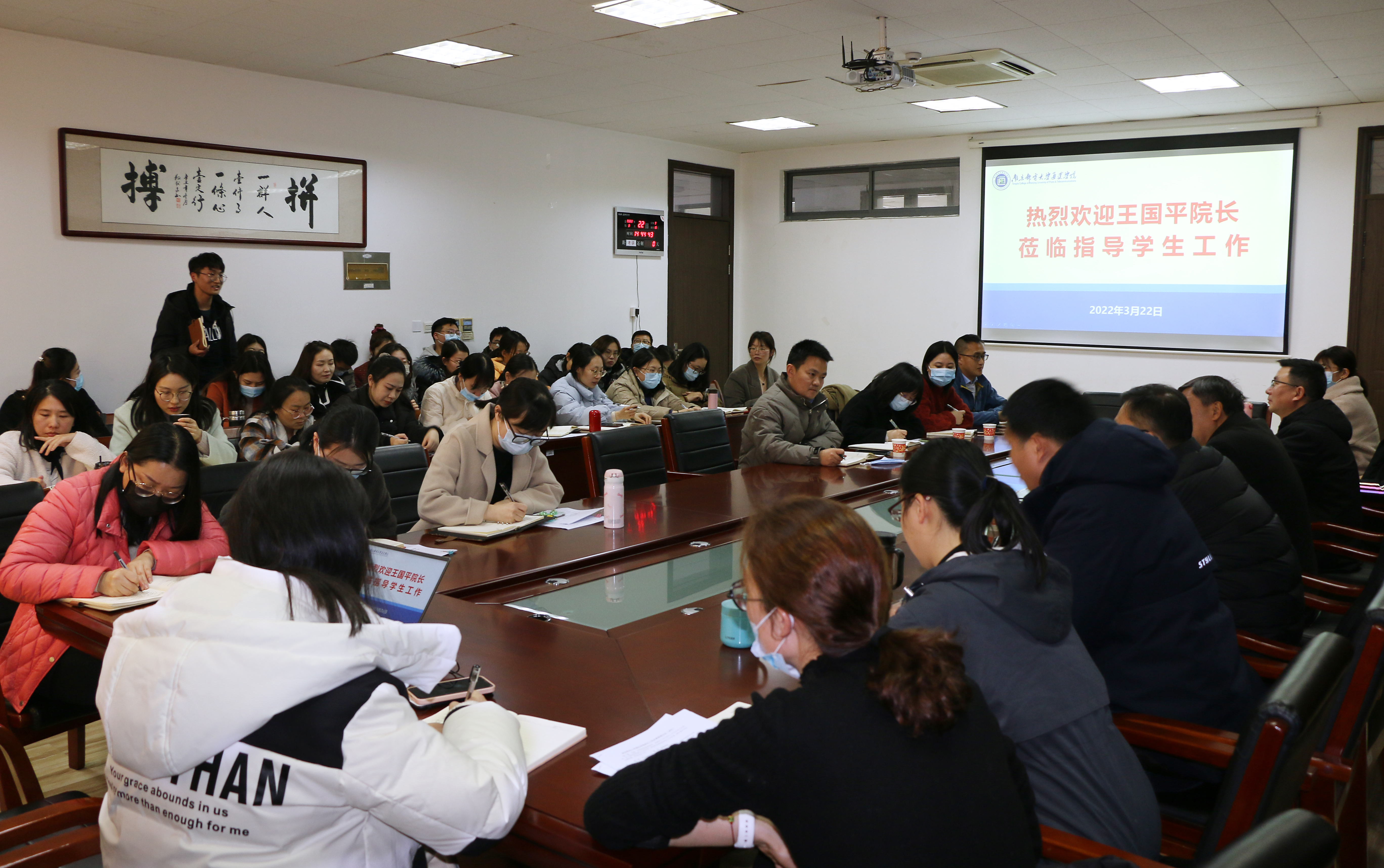 3月22日下午,今年会官网在大学生活动中心二楼会议室召开了工作座谈会,王国平院长与辅导员亲切交流。院党委副书记兼副院长王楷,学工处、团委、招就处负责人,二级学院党总支副书记以及全体辅导员参加了此次会议。座谈会由王楷副书记主持。