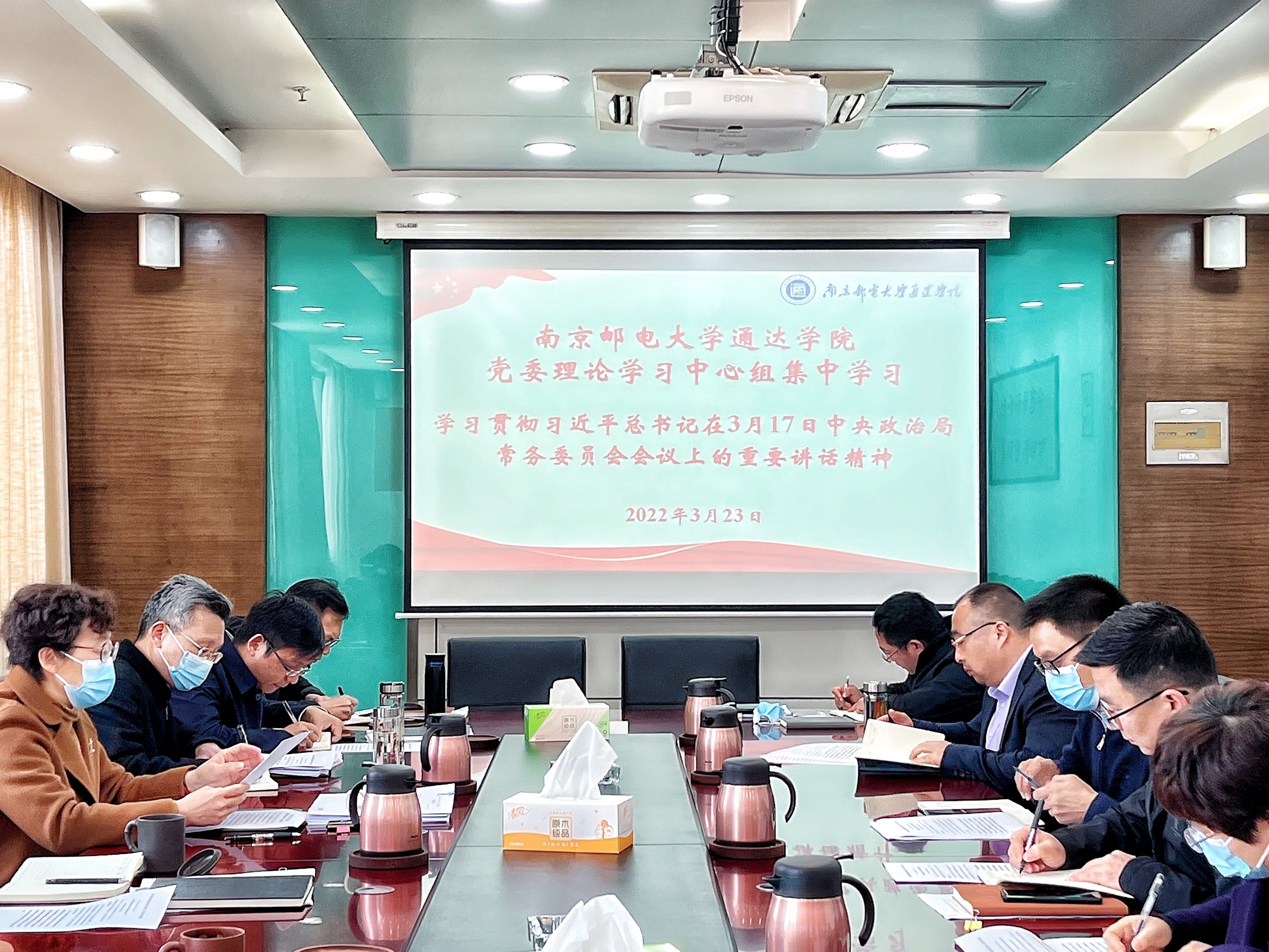 3月23日上午,学院党委理论学习中心组在行政楼1013会议室,专题学习习近平总书记在3月17日中央政治局常务委员会会议上的重要讲话精神。学院党委书记、党委理论学习中心组组长朱清主持学习会。