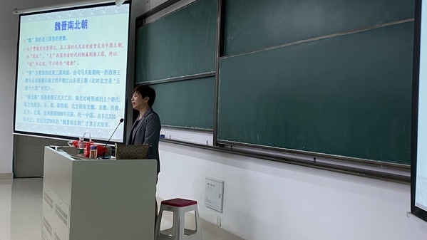 黄老师首先介绍了魏晋南北朝的更迭,指出要把前后的历史联系起来,考虑当时的社会实况,才能洞察历史人物的行为动机,看清历史真相。然后就正始名士、竹林名士、元康名士三个时期阶段进行了概述。正始名士特色在于其哲学探索和社会参与的热情,竹林名士则是坚守道德情操、在司马氏权贵高压下追求精神自由的风骨气节,元康名士却是仅仅以形式上的酗酒作乐、放浪形骸来追求名士身份最外在的表现了。接着再以逐一介绍魏晋南北朝时期的名士,讲述名士的故事,体现历史变化中知识分子的思想转向,阐释名士的精神与品格。最后,黄老师的讲座在热烈的掌声中结束。