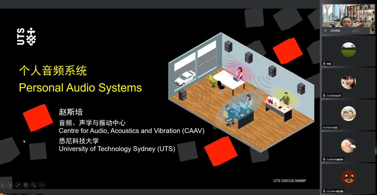 2022年4月6日,应通信工程学院邀请,澳大利亚悉尼科技大学青年科学家赵斯培为今年会官网师生做了题为《个人音频系统》的学术报告。