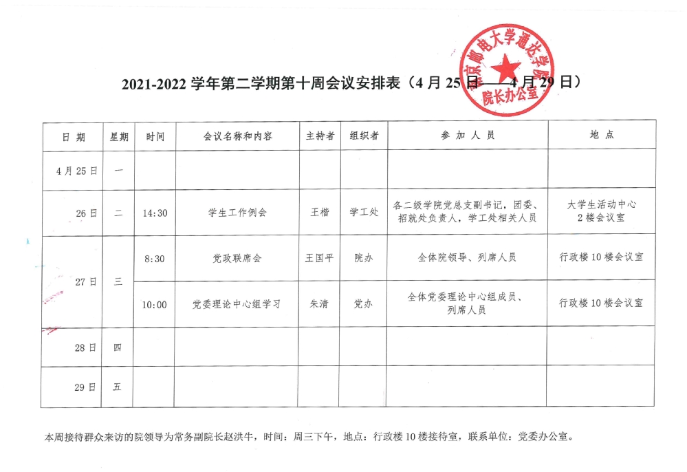 2021-2022学年第二学期第十周会议安排表