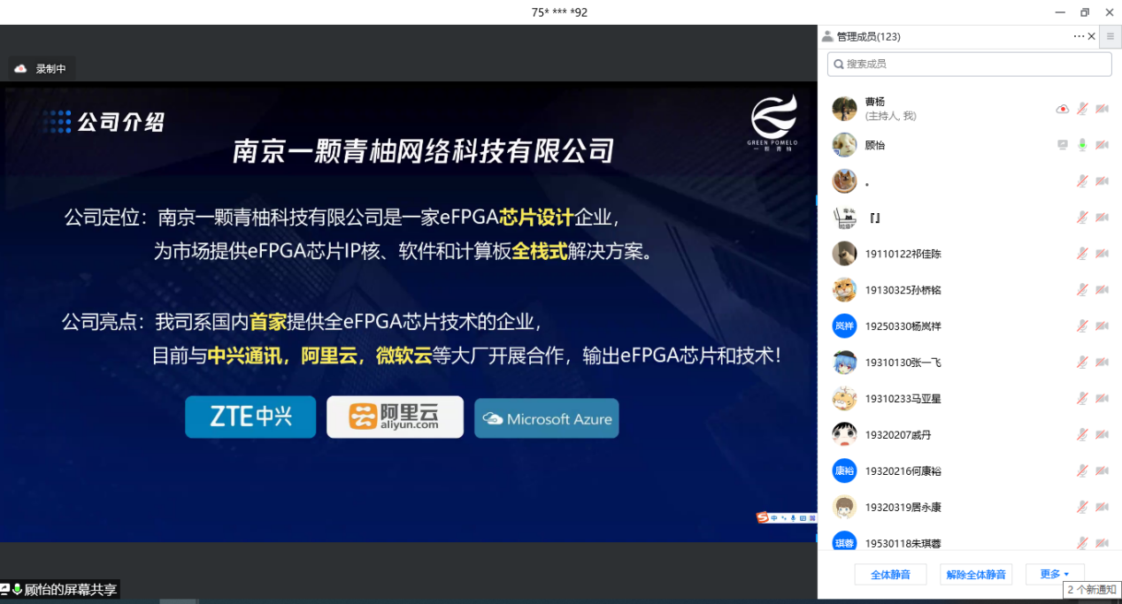 培训会首先由南京邮电大学电子与光学工程学院邓森屾博士带来《5G功放设备的先驱者——全系列宽带功放设备》的路演展示,以及计算机学院顾怡博士带来《至强之芯——高性能通用型eFPGA芯片及系统》的路演展示,两位博士以国赛的标准为今年会官网师生进行两场精彩的项目路演。会上还以视频的方式观看了其他金奖项目的路演。随后,邓森屾博士、顾怡博士又给今年会官网学生讲述了他们备战国赛的历程、项目准备中的重难点、注意事项和评委经常性的问题等方面内容,并与今年会官网师生进行了线上交流。本次培训会让今年会官网学生更加直观地感受到大赛的魅力,以更加高的要求投入接下来的备赛阶段。