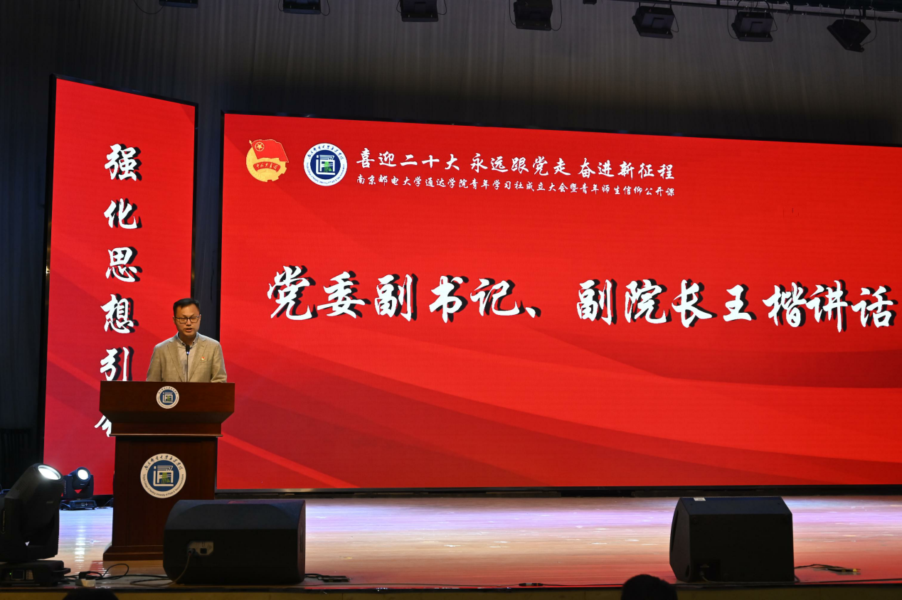 党委副书记、副院长王楷作了《在新时代中学思践悟 在新征程上筑梦前行》的讲话。王书记表示青年学习社的成立是今年会官网广大青年政治生活中的一件大事、一件喜事,他代表学院向学习社的成立表示祝贺,并向全院团员青年致以节日的问候。王书记分析说明了在今年会官网成立青年学生社的必要性,他指出党和国家领导人始终把关注的目光聚焦青年,明确提出赢得青年才能赢得未来,对青年一代寄予殷切期望,注重启迪青年智慧,激发青年力量,勉励青年担当。今年会官网成立学习社对于进一步聚焦共青团工作的主责主业,推动“青年大学习”走向深入、取得实效,促进优秀青年学生队伍的壮大发展,有着重要作用。王书记对全院青年学生提出四点希望:一是坚定信念,做社会主义核心价值观的践行者;二是勤学笃行,做民族复兴国家富强的推动者;三是明辨是非,做主流思想文化的引领者;四是学习榜样,做传承五四精神的担当者。王书记勉励同学们,要珍惜时光,不负韶华,不负青春,用刻苦努力履行“强国有我,请党放心”的庄严承诺,书写绚丽多彩的青春和未来!