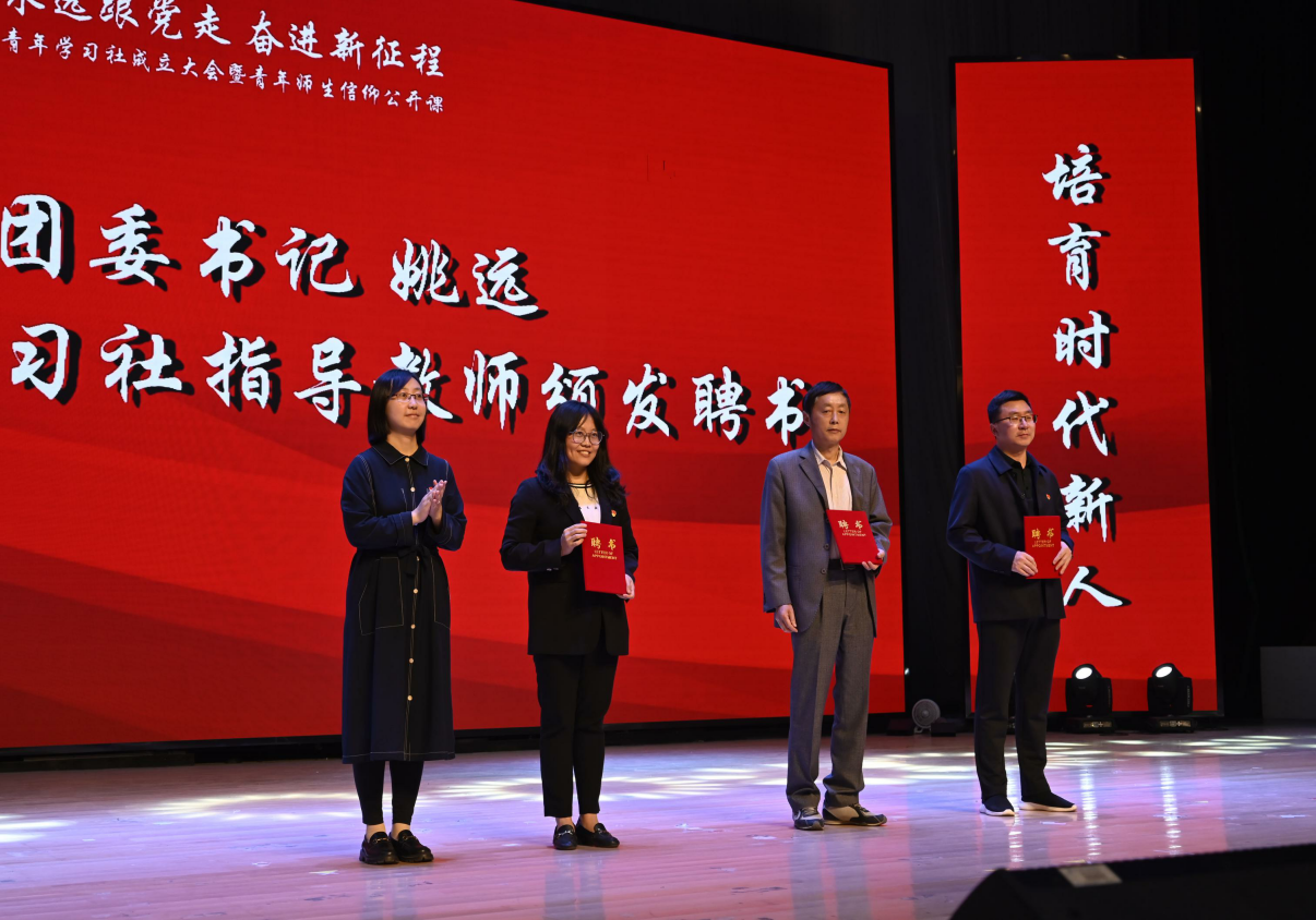 团委书记姚远向青年学习社指导教师颁发聘书