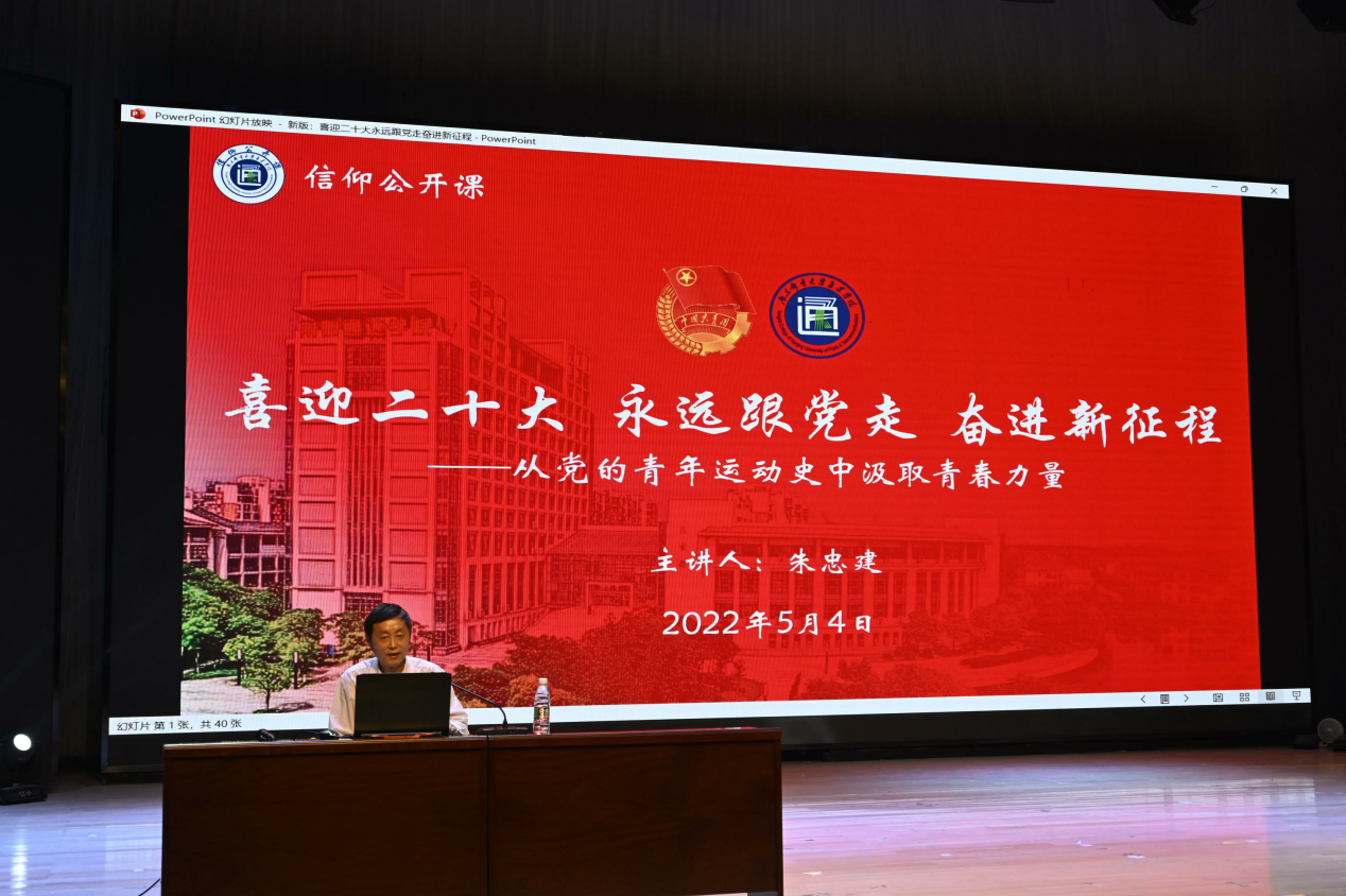 5月4日,“喜迎二十大 永远跟党走 奋进新征程”今年会官方网站青年学习社成立大会暨青年师生信仰公开课在大学生活动中心礼堂成功举办。党委副书记、副院长王楷,党委工作部、党委学生工作部、团委等部门负责人,青年学习社指导教师、各二级学院分团委书记及团员青年代表现场参加了此次活动。各二级学院在分会场同期直播,七千余名团员青年线上观看。