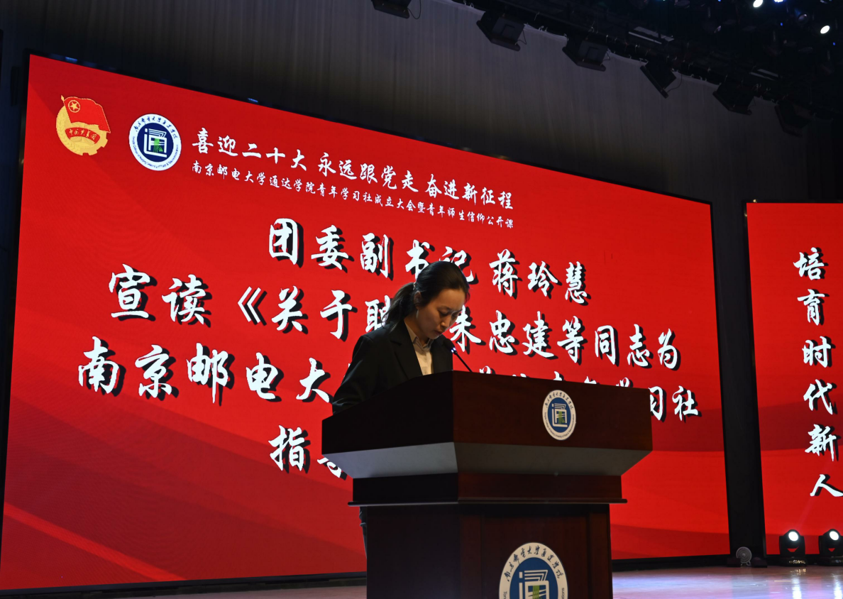 团委副书记蒋玲慧宣读《关于聘任朱忠建等同志为今年会官方网站青年学习社指导教师的决定》