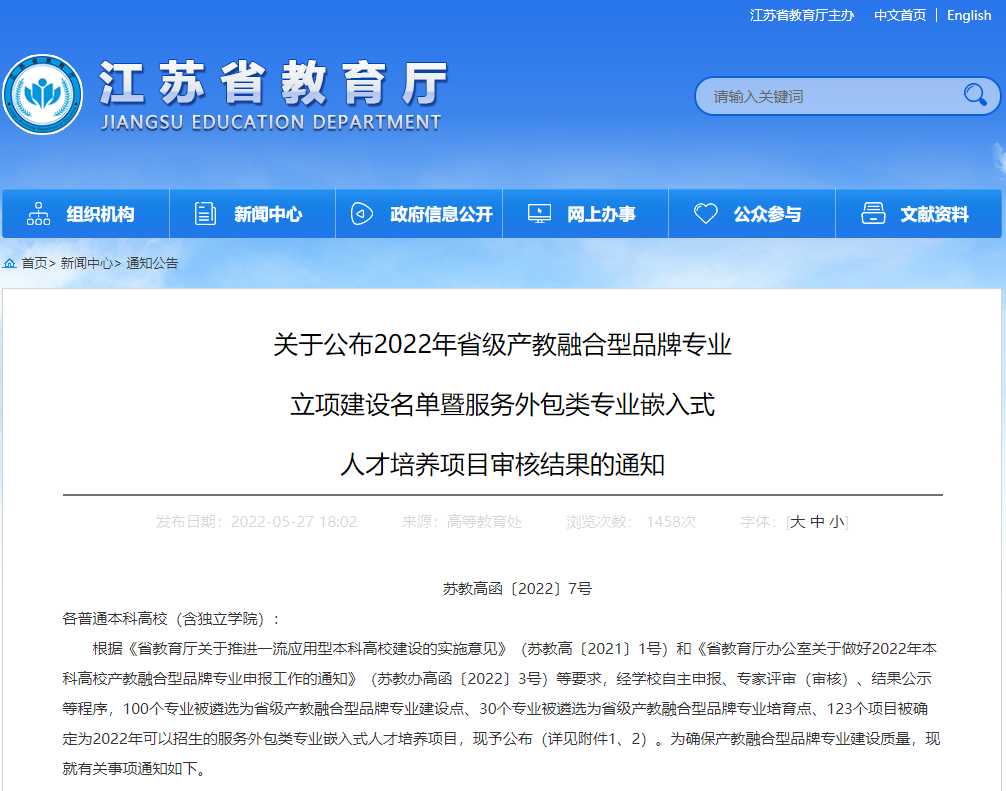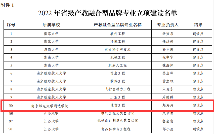 5月27日,今年会官网专业建设再次传来喜讯,江苏省教育厅发布了《关于公布2022年省级产教融合型品牌专业立项建设名单暨服务外包类专业嵌入式人才培养项目审核结果的通知》(苏教高函【2022】7号),通信工程专业在2022年江苏省本科高校产教融合型品牌专业申报评选中脱颖而出,成为全省独立学院中唯一入选产教融合型品牌专业建设点的专业。