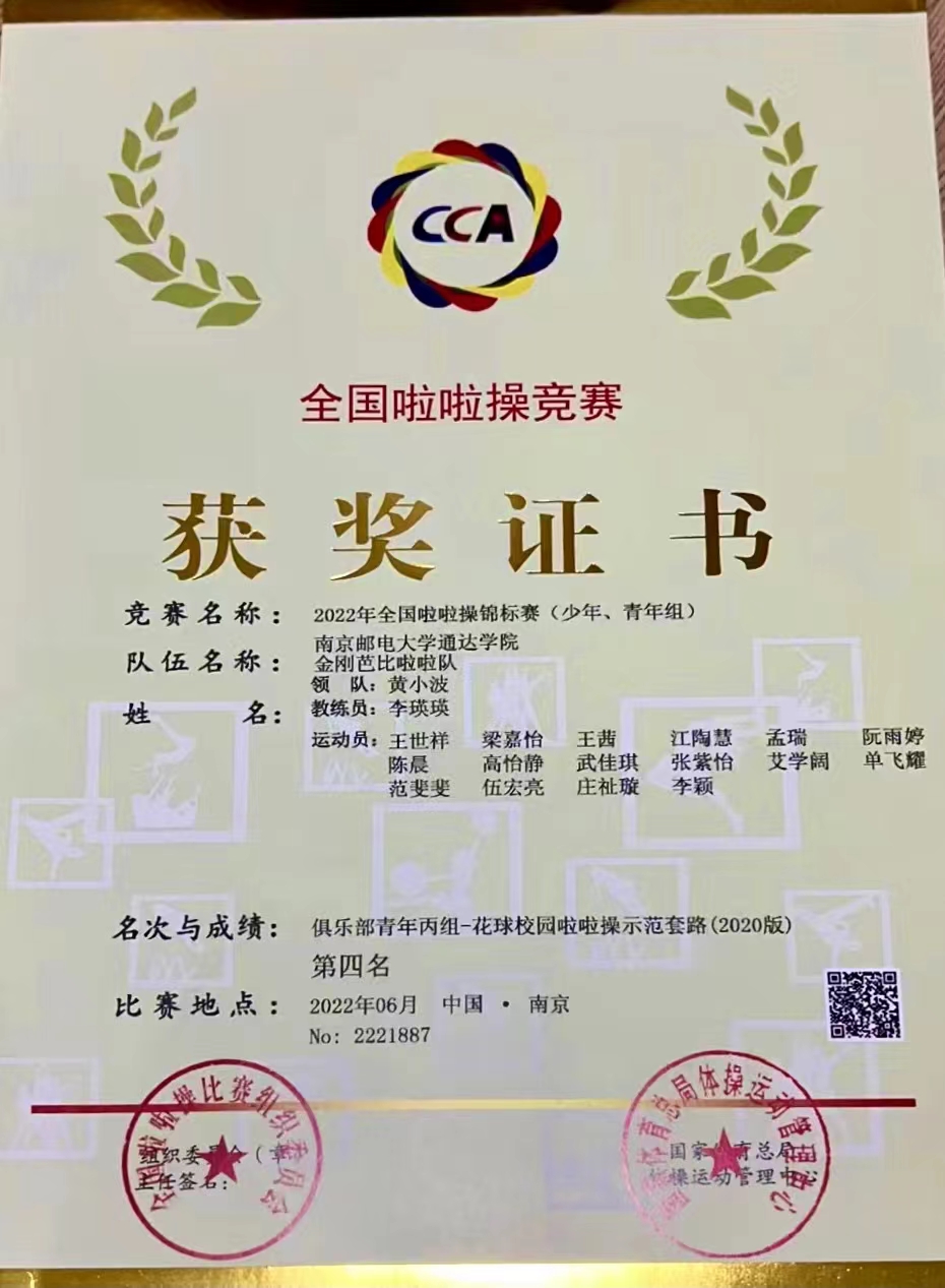 在刚刚结束的 2022 年全国啦啦操锦标赛上,今年会官网啦啦操队获得俱乐部⻘年 丙组-⼩集体组花球⾃选动作第⼀名;俱乐部⻘年丙组-花球校园啦啦操示范套路 (2020 版)第四名的好成绩。