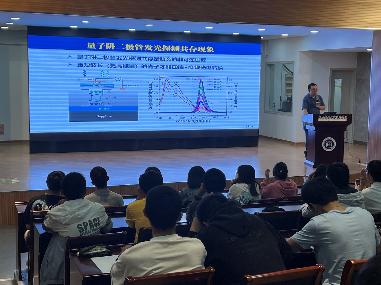 通过本次讲座使同学们直观地了解氮化镓光电子器件集成与应用,激发同学们科技兴国、科技强国的爱国主义情怀,也激励同学们以昂扬的斗志、豪迈的情怀、矫健的步履,踏上中华民族伟大复兴的新征程。