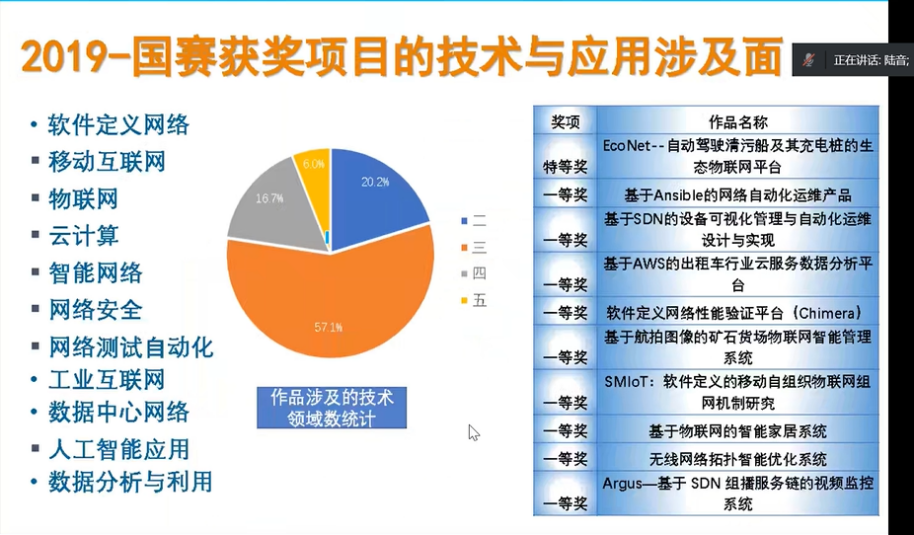 在讲座中,陆教授给参会师生普及了“C4网络技术挑战赛”所需的基础理论,讲解了参赛要求和评审标准。并以部分往届获奖作品为例,具体解析了“C4网络技术挑战赛”项目的培育和作品撰写要点,帮助同学们更好地了解和参加该项赛事。讲座最后,计算机工程学院参会师生和陆教授进行了热烈的互动和交流。