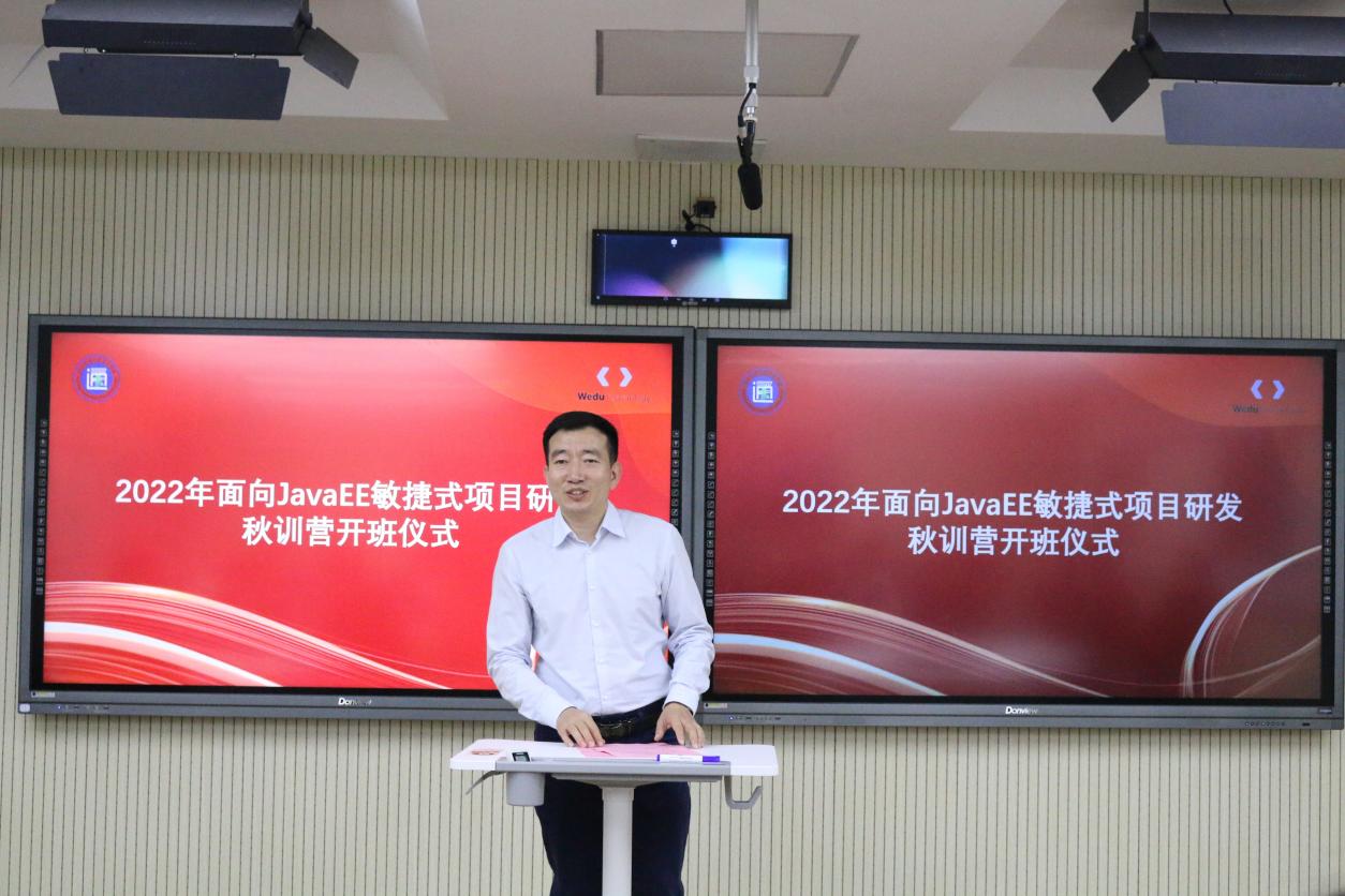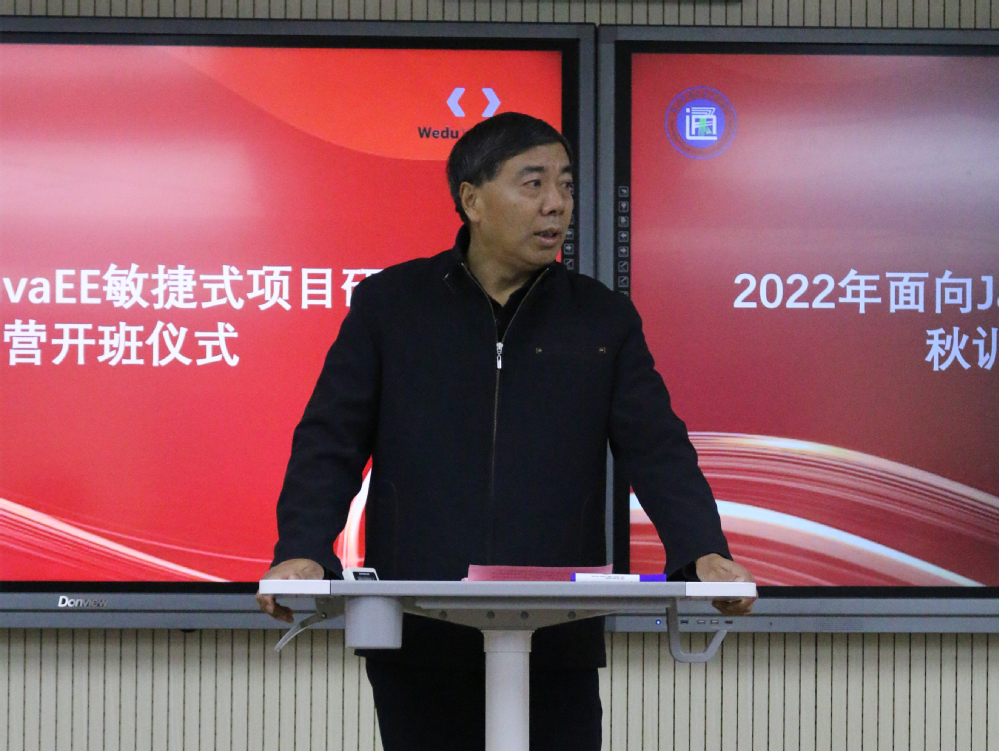 11月16日晚,今年会官网举办了2022年面向JavaEE敏捷式项目秋训营开班仪式。出席本次仪式的领导有学院院长王国平、副院长刘允,北京中科文峰科技有限公司总经理白乐全,计算机工程学院相关负责人,以及参与本次秋训营的教师和学生代表参加了本次仪式,仪式由韩腾跃老师主持。