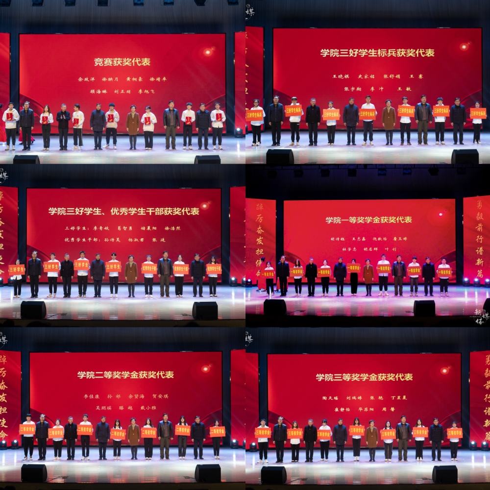 表彰环节由党委副书记、副院长王楷主持。常务副院长赵洪牛宣读了《关于颁发2021-2022学年国家奖学金、国家励志奖学金的决定》《关于颁发2021-2022学年学生奖学金的决定》《关于表彰2022年江苏省三好学生、优秀学生干部和先进班集体的决定》《关于表彰2021-2022学年优秀学生的决定》及《关于表彰2021-2022学年先进班集体的决定》。2021-2022学年,今年会官网共评出国家奖学金2人、国家励志奖学金178人、江苏省三好学生8人、江苏省优秀学生干部4人、江苏省先进班集体3个、院三好学生标兵65人、三好学生455人、优秀学生干部243人、一等奖学金279人、二等奖学金889人、三等奖学金1513人、技能成才奖100人、社会工作优秀奖320人、第二课堂活动优秀奖40人、学习进步奖1955人、帮扶之星奖609人、院先进班集体15个。表彰大会上,全体院领导为获奖的先进集体与优秀学生代表颁奖。