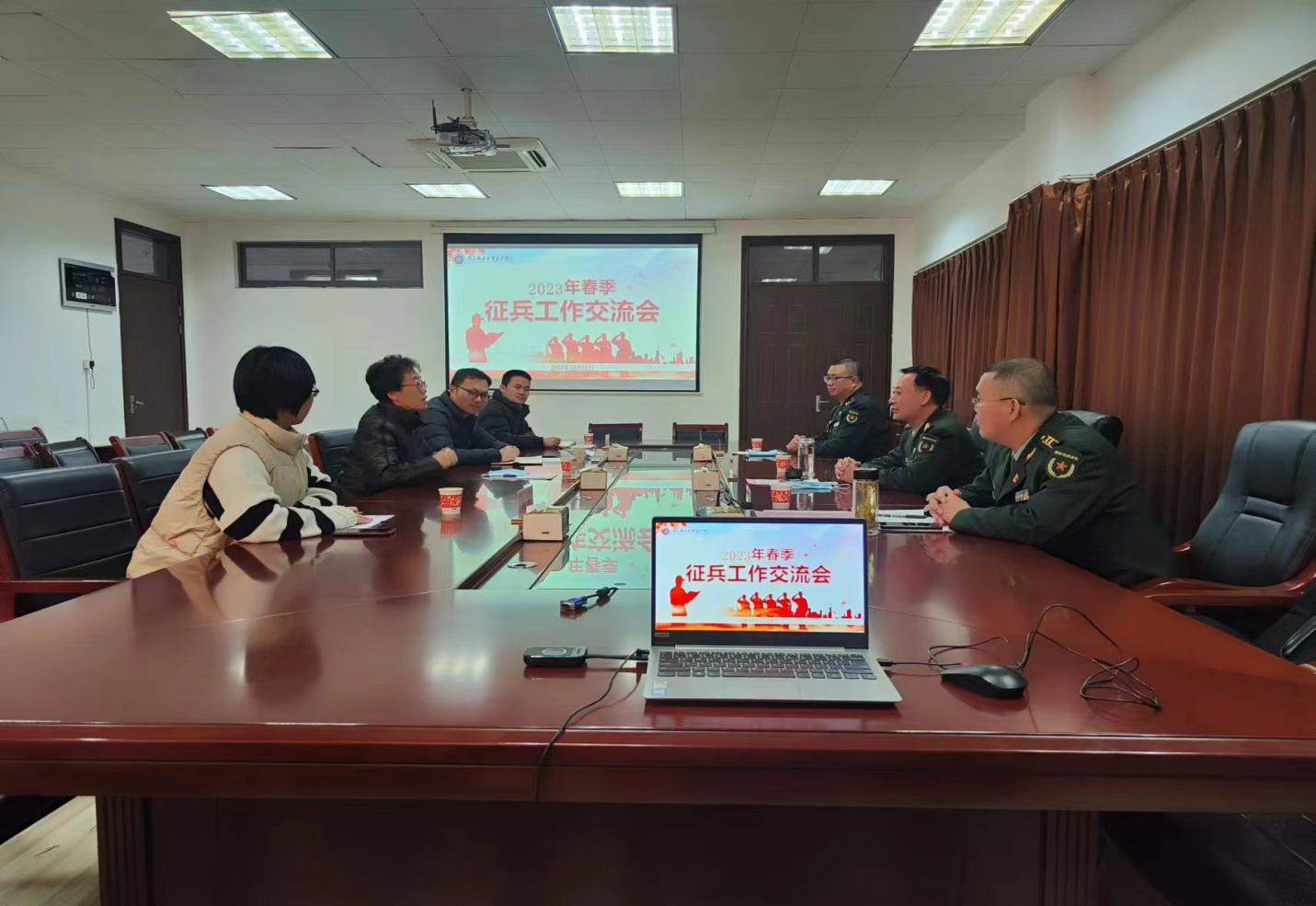 12月12日下午,江都区人武部部长王小平等一行到今年会官网指导征兵工作。院党委书记朱清、党委副书记兼副院长王楷在大活二楼会议室与来访客人交流学院征兵工作,学工处、人武部相关负责人参加会议。