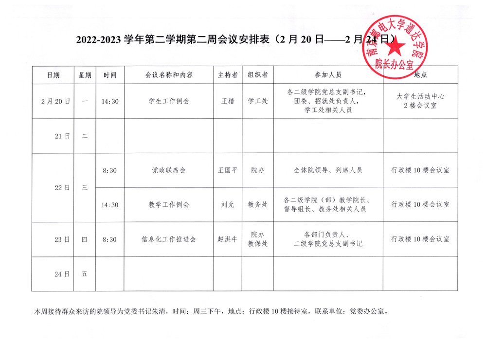 2022-2023学年第二学期第二周会议安排表