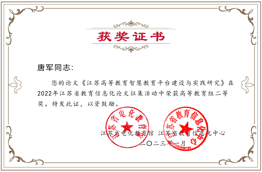 江苏省教育信息化论文征集比赛旨在推进教育数字化战略,促进教育高质量发展。征文以习近平新时代中国特色社会主义思想为指导,围绕加快教育现代化、建设教育强国、办好人民满意的教育,以“推进教育数字化战略,促进教育高质量发展”为主题。本次参赛获奖的作品,都是参赛教师在我校教育信息化建设背景下,结合智慧校园建设现状选题创作,内容聚焦,主题突出,立足教学需求,理论与实际相集合,对高校教育信息化建设具有重要借鉴作用。