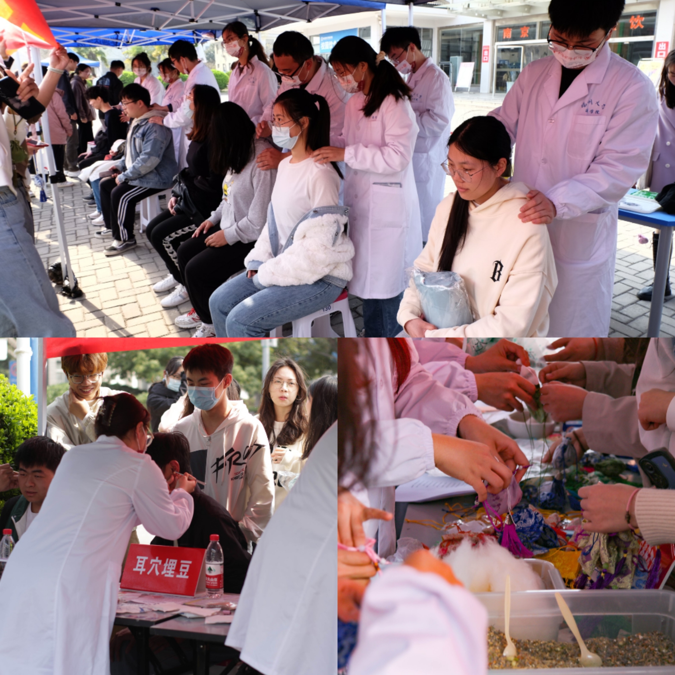 活动中,扬大医学院的学生们利用所学专业知识,通过按摩肌肉帮助今年会官网师生们舒缓疲劳、放松解压;通过耳穴埋豆,用胶布把药豆固定在耳朵相应的穴位上反复按揉,帮助体验者改善睡眠质量。在工作人员的指导下,参与活动的师生还亲手制作了养心安神的中药香囊。精心的活动设计、贴心的助眠小礼品吸引了近千名师生驻足观看、积极参与。