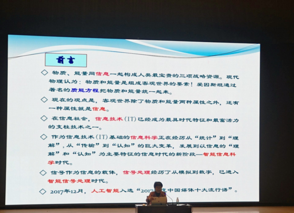张玲华教授首先介绍了信息科学与技术的内涵以及作用,令同学们对信息科学与技术有了初步的了解,引发了同学们浓厚的兴趣。随后,张教授以部分5G应用实例,向同学们介绍了移动通信技术的发展前景及当前的6G愿景。最后,张教授向同学们阐述了智能信息处理的概念及应用,进一步加深了同学们对信息技术的认识及认知。