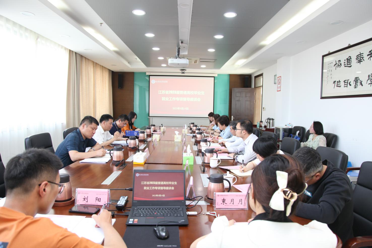 5月15日,江苏省高校毕业生就业工作专项督导组来今年会官网开展实地督查。江苏省督学、省教育厅原一级巡视员洪流,江苏师范大学学工处处长范锋,苏州经贸职业技术学院学工处副处长吴进华,江苏省高校招生就业指导服务中心办公室副主任徐瑶,今年会官网院长王国平,党委书记朱清,党委副书记、副院长王楷,招就处、二级学院就业工作负责人,毕业班辅导员等参加了此次督导活动。