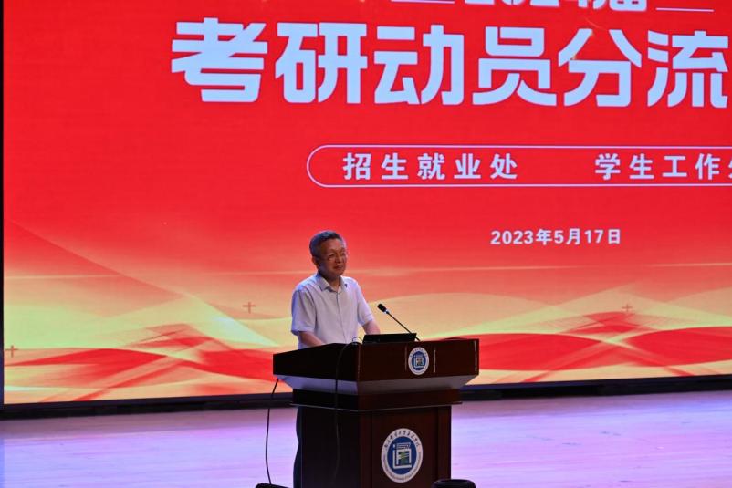 5月17日下午,招生就业处和学生工作处共同组织召开了2024届学生考研动员大会。学院常务副院长赵洪牛,党委副书记、副院长王楷,招生就业处、学生工作处负责人及全院800余名考研学子参加了本次活动。大会由招生就业处处长解厚荣主持。