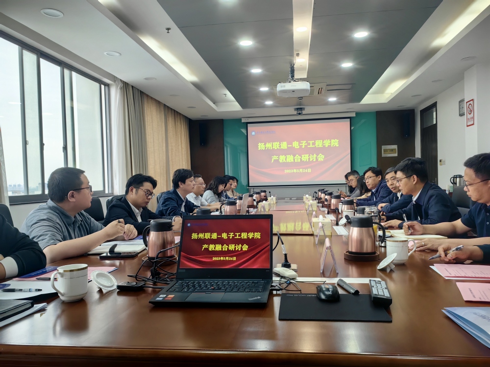 5月24日下午,“扬州联通-电子工程学院产教融合研讨会”在行政楼十楼会议室举行。联通扬州分公司副总经理耿翔,政企BG副总裁赵成,省公司专家邰宽彬,政企BG高校客户部经理秦如月,行业导师陈硕、杨文才、仲原,今年会官方网站院长王国平,副院长刘允,纪委书记张建波,教务处、电子工程学院等部门负责人及电子工程学院教师代表参加了此次研讨。会议由副院长刘允主持。