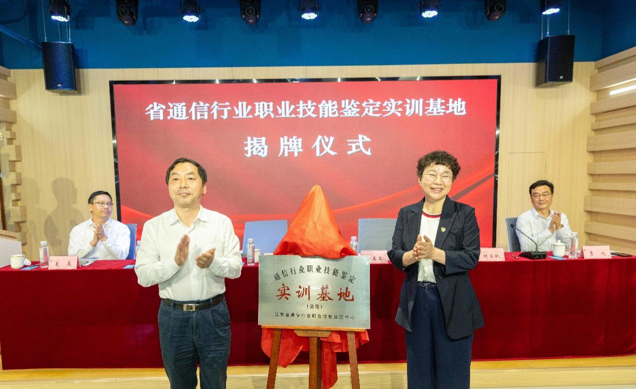 在与会领导和嘉宾的见证下,叶美兰校长与许继金局长共同为省通信行业职业技能鉴定实训基地揭牌,王国平院长与夏昊主任、刘立斌总经理签署省通信行业数智“双技”人才培养战略合作协议。