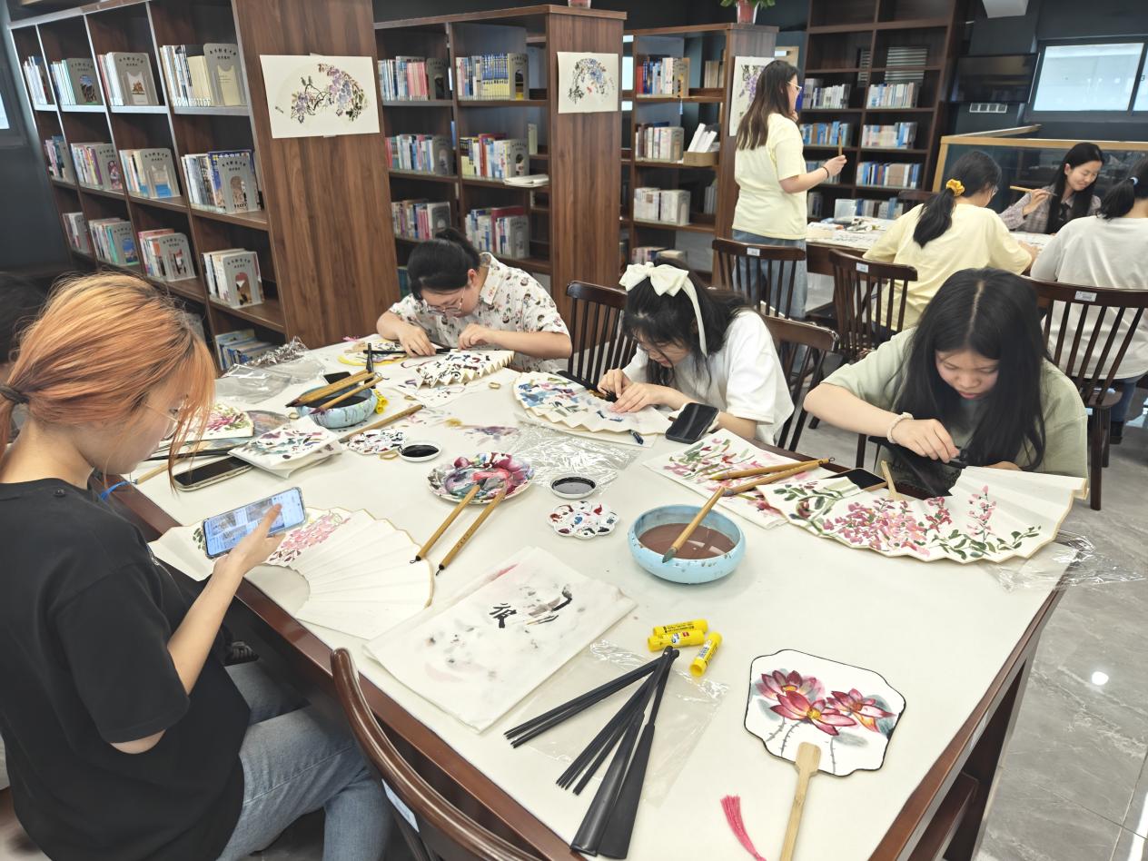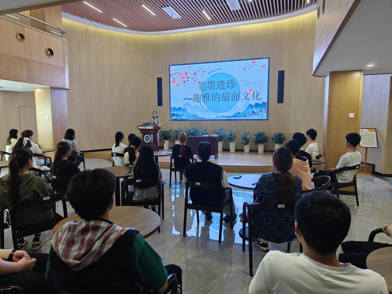 5月31日下午,图书馆在史书阁多功能厅开展“笔墨遗珍—趣雅的扇面文化”绘扇制扇特色劳动教育实践活动,活动邀请了扬州市书法家协会刻字专业委员会、扬州市民间文艺家协会书法专业委员会委员朱丽,和同学们共同开启一场追寻扇面之美的文化盛宴。