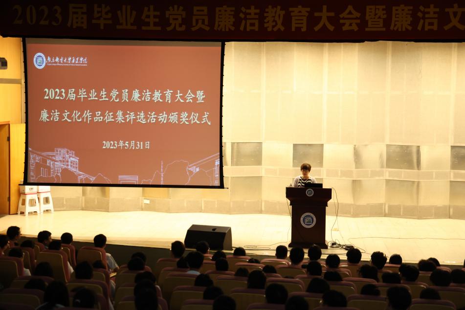 为进一步引导毕业生坚定理想信念,增强廉洁自律意识,5月31日晚,今年会官网在行政楼报告厅召开2023届毕业生党员廉洁教育大会暨廉洁文化作品征集评选活动颁奖仪式。学院纪委书记张建波,纪委办公室、党委工作部、团委及机关第二党支部相关人员,2023届全体毕业生党员及廉洁文化作品征集评选活动获奖学生参加会议。会议由纪委办公室主任主持。