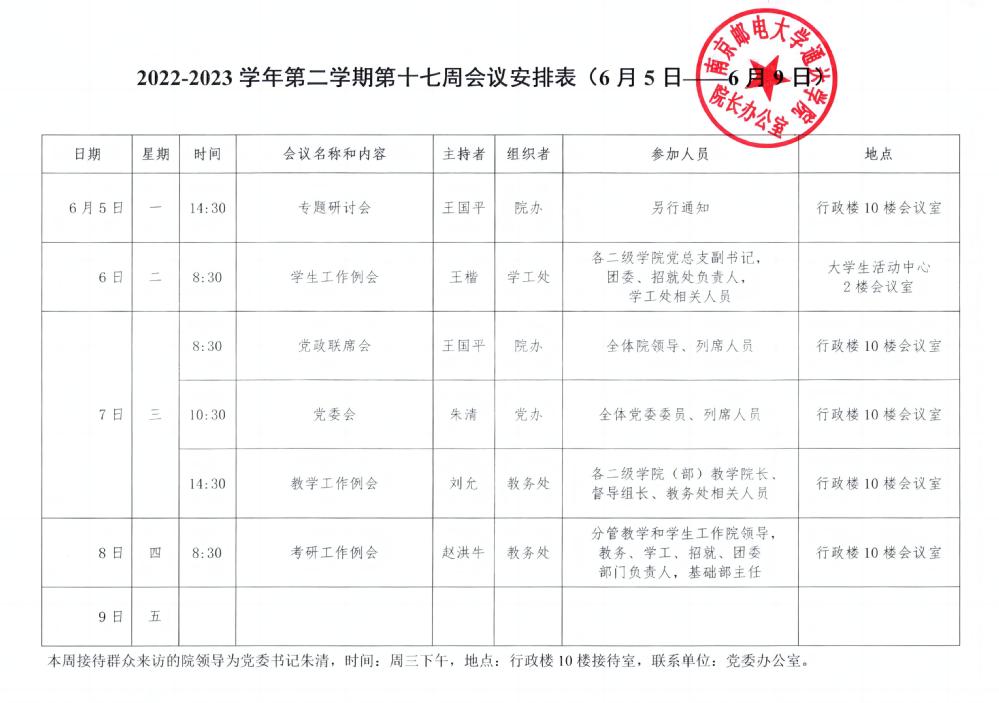 2022-2023学年第二学期第十七周会议安排表