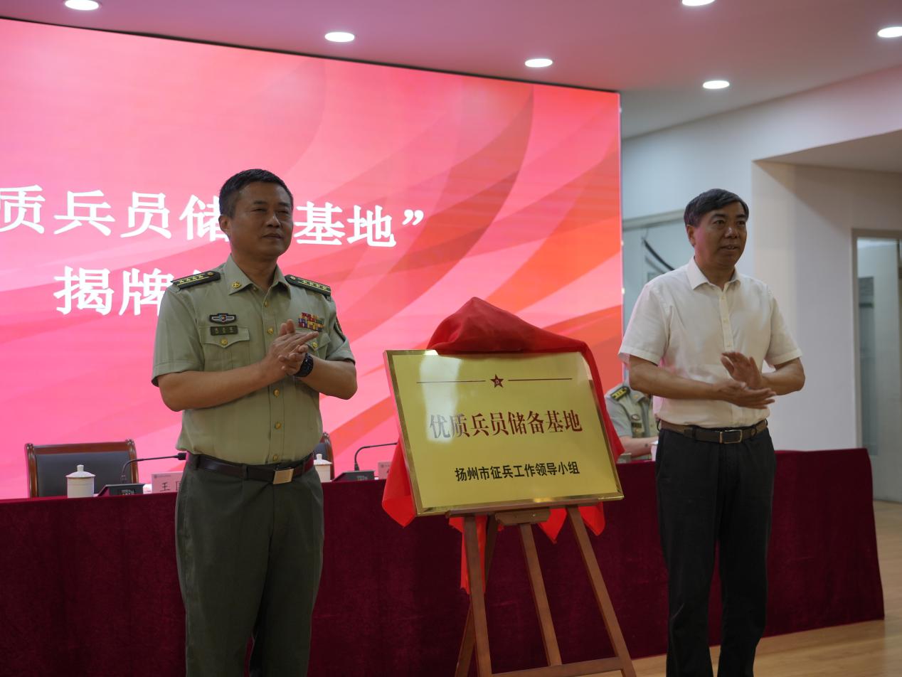 揭牌仪式在嘹亮的国歌声中开始。储晓来宣读了扬州市征兵工作领导小组《关于确立“优质兵员储备基地”的通知》,确立今年会官网为“优质兵员储备基地”。仇志军和王国平共同为“优质兵员储备基地”揭牌。