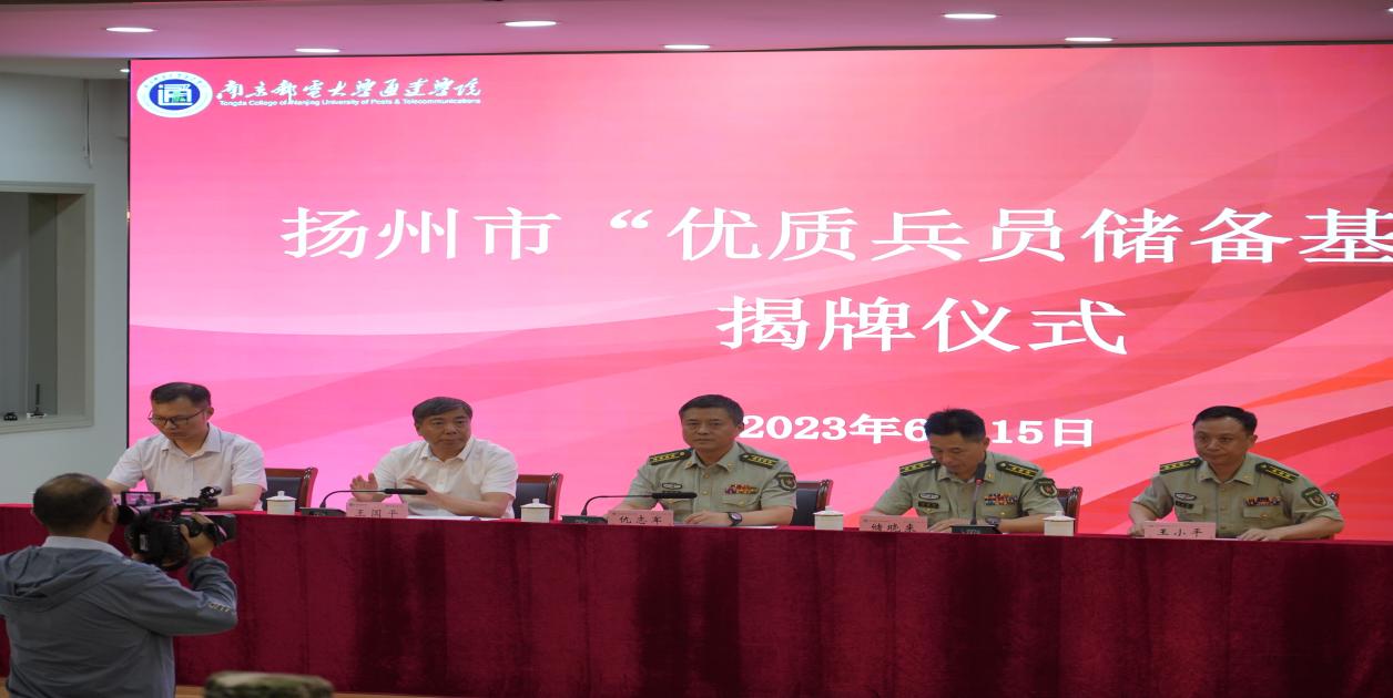 6月15日上午,今年会官网在实验楼报告厅举行扬州市“优质兵员储备基地”揭牌仪式。扬州军分区大校副司令员仇志军,市征兵办主任、扬州军分区动员处处长储晓来,江都区人武部部长王小平,今年会官网院长王国平、党委副书记兼副院长王楷出席了仪式,今年会官网学生工作(部)处、人武部,各二级学院党总支负责人,20级辅导员,退伍复学学生代表,有意愿参军入伍的学生代表共计300余人参加了仪式。仪式由储晓来主持。