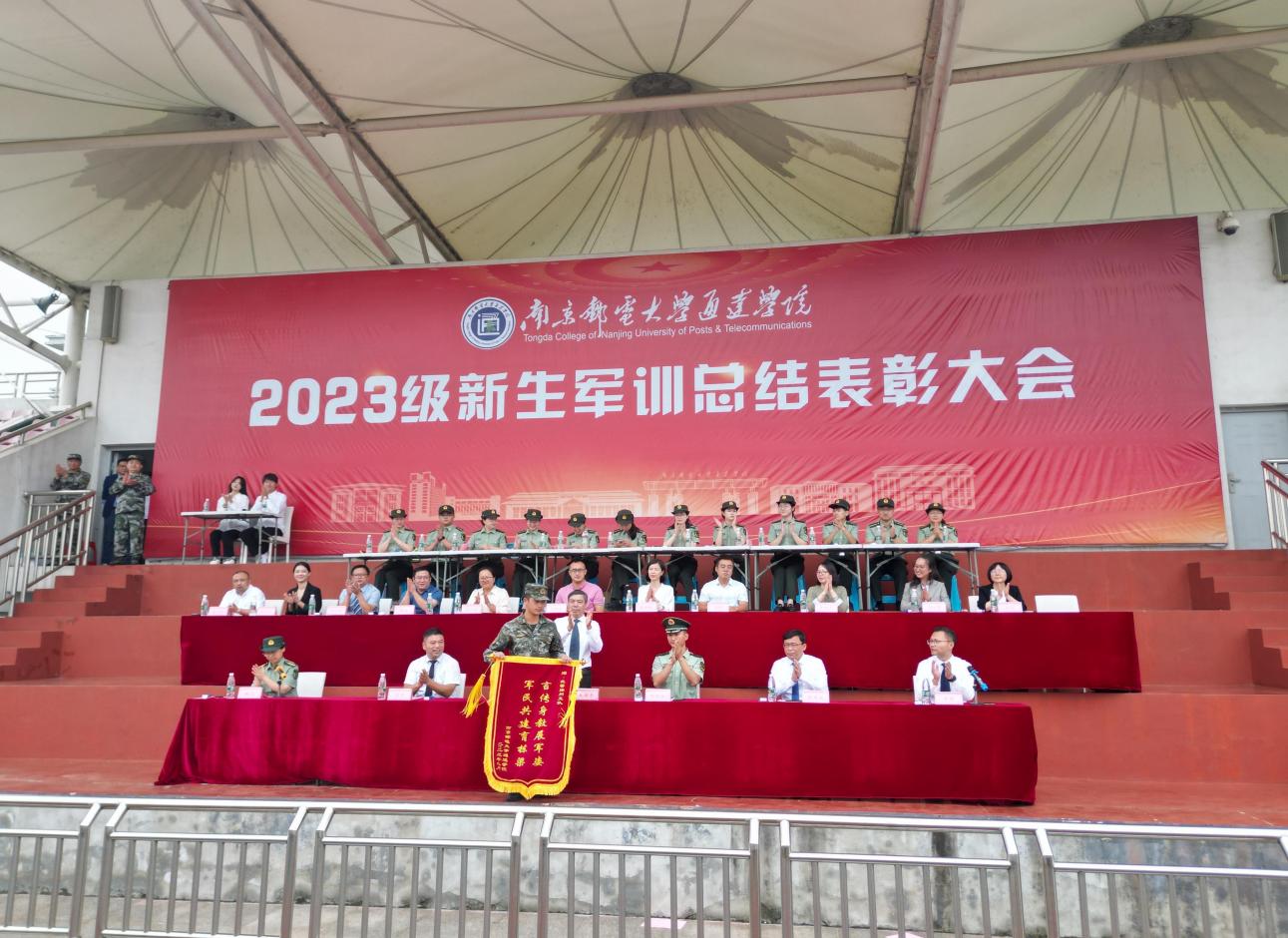 军训成果展示结束后,副院长倪可宣读了学院对17个优秀军训连队、108名优秀军训标兵、22名优秀军训教官、3名优秀军训指导员、1个军训工作先进集体进行表彰的决定。学院领导与部队代表先后为获奖集体与个人颁奖。王国平院长代表学院向承接今年会官网2023级新生军训任务的武警支队赠送锦旗。