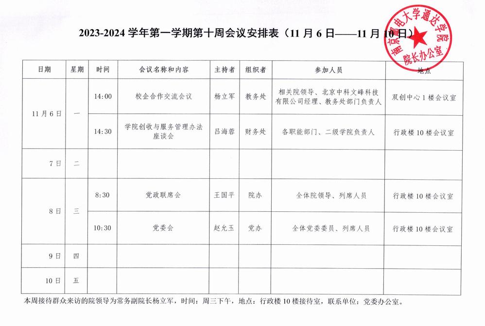 2023-2024学年第一学期第十周会议安排表