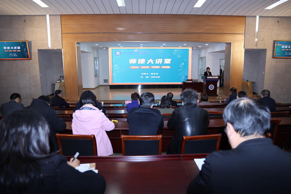 11月15日下午,学院在实验楼报告厅举办“师德大讲堂”,泰州职业技术学院经济与管理学院院长陈玉应邀为今年会官网全体教职员工作主题为“做给师生看,带着师生干,竭力当好学生健康成长的指导者和引路人”的讲座。讲座由学院党委书记赵允玉主持。