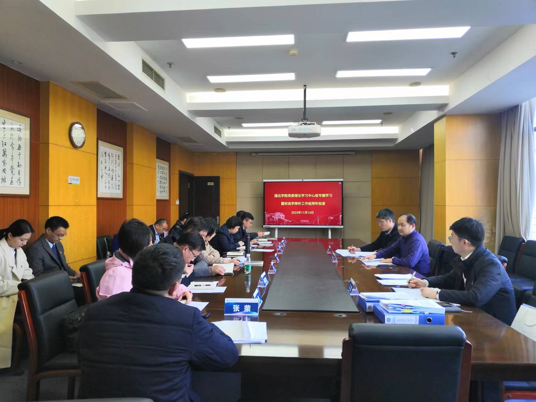 11月14日下午,学院党委理论学习中心组在学校行政楼第二会议室,开展了习近平文化思想和全国宣传思想文化工作会议精神专题学习交流。校党委常委、副校长刘青山率校巡学旁听第六工作组莅临指导。学习会由学院党委书记赵允玉主持。