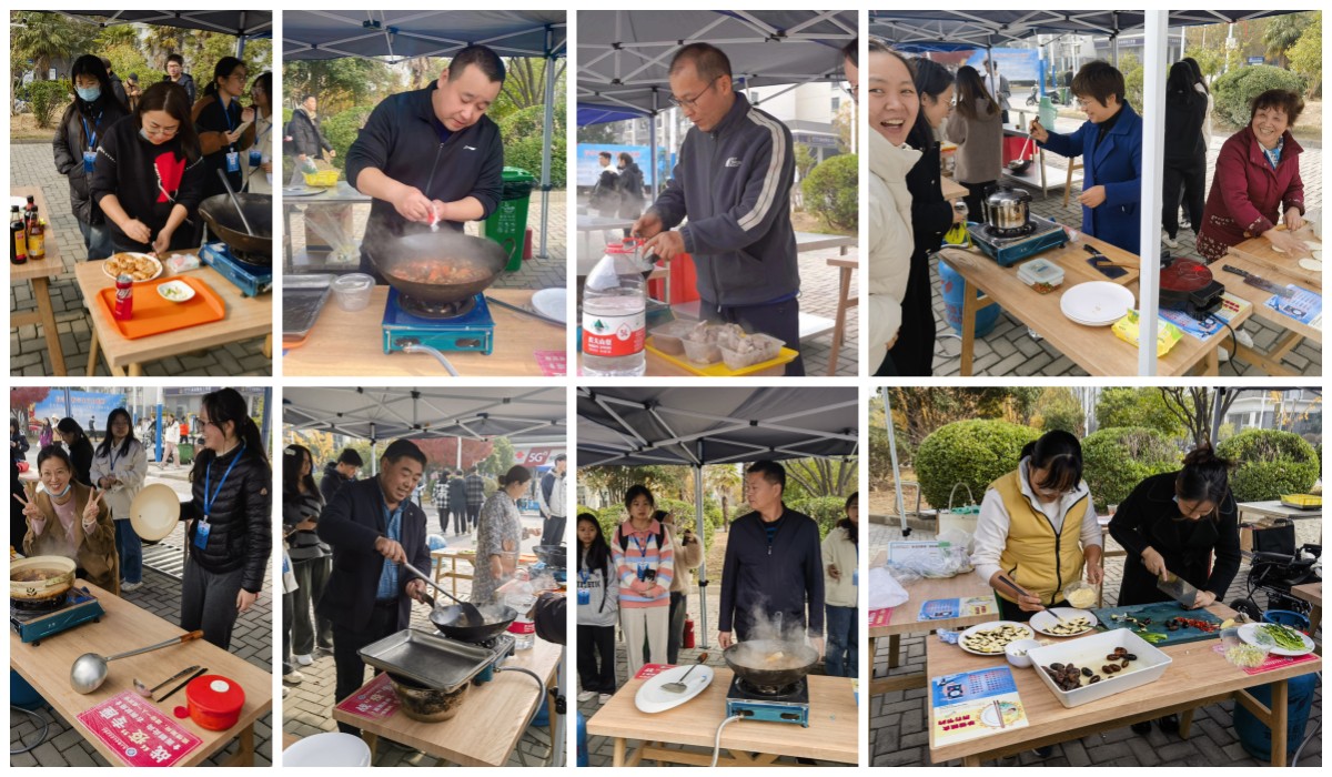 厨艺比赛分为教工组和名厨组。比赛现场参赛选手热情四溢,跃跃欲试,锅碗瓢盆叮当作响,炉灶边围满观众。比赛中一道道美食如破茧成蝶、羊肉垫花卷、西安肉夹馍、红烧肉、梅子小排等接踵而至,菜香四溢。大家一边品鉴美食,一边交流厨艺,喜悦之情溢于言表。