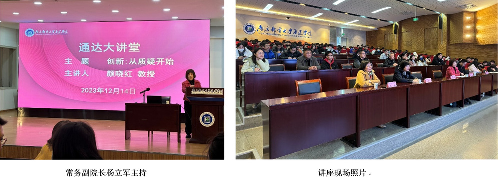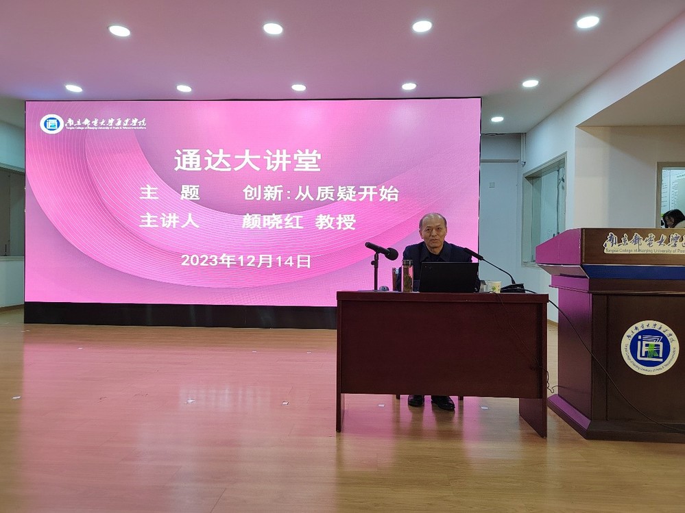 12月14日下午,通达大讲堂在一号实验楼开讲,本次特邀南京邮电大学颜晓红教授为学院师生作主题为“创新:从质疑开始”的学术讲座。讲座由学院常务副院长杨立军主持,学院副院长吕海蓉、纪委书记宋健康参加会议。