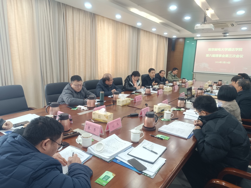 瑞雪纷飞,玉树琼枝。2月24日上午,学院第六届理事会第三次会议在学院如期召开。会议由南京邮电大学校长、学院理事长叶美兰主持,扬州科创教育投资集团董事长、副理事长吴俊,南京邮电大学党委常委、副校长刘青山等理事会全体理事出席会议。南京邮电大学党委常委、副校长王友国等监事会全体监事,学院领导,扬州科创教育投资集团相关领导列席会议。