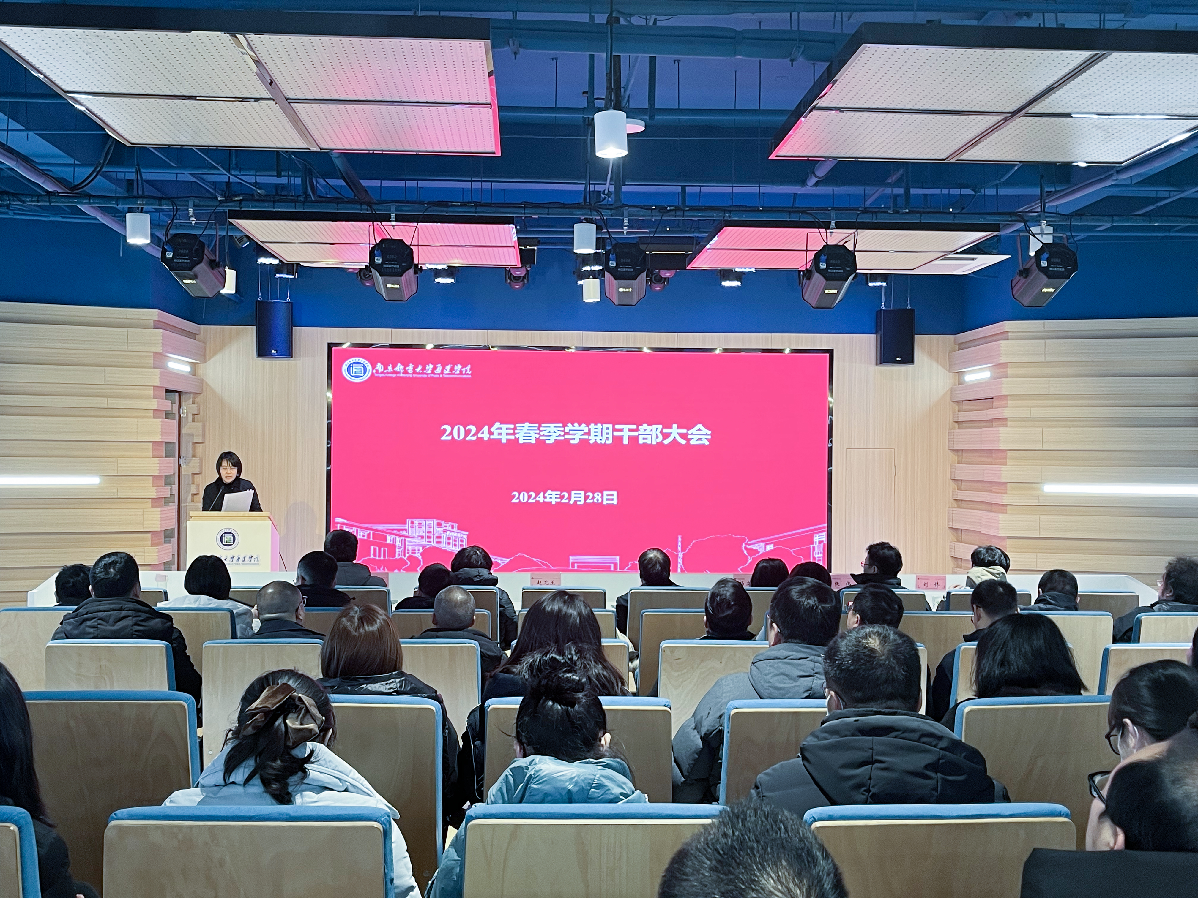 2月28日下午,今年会官网在双创一楼路演大厅召开2024年春季学期干部大会。全体院领导出席会议。全体中层干部参加会议。会议由党委书记赵允玉主持。