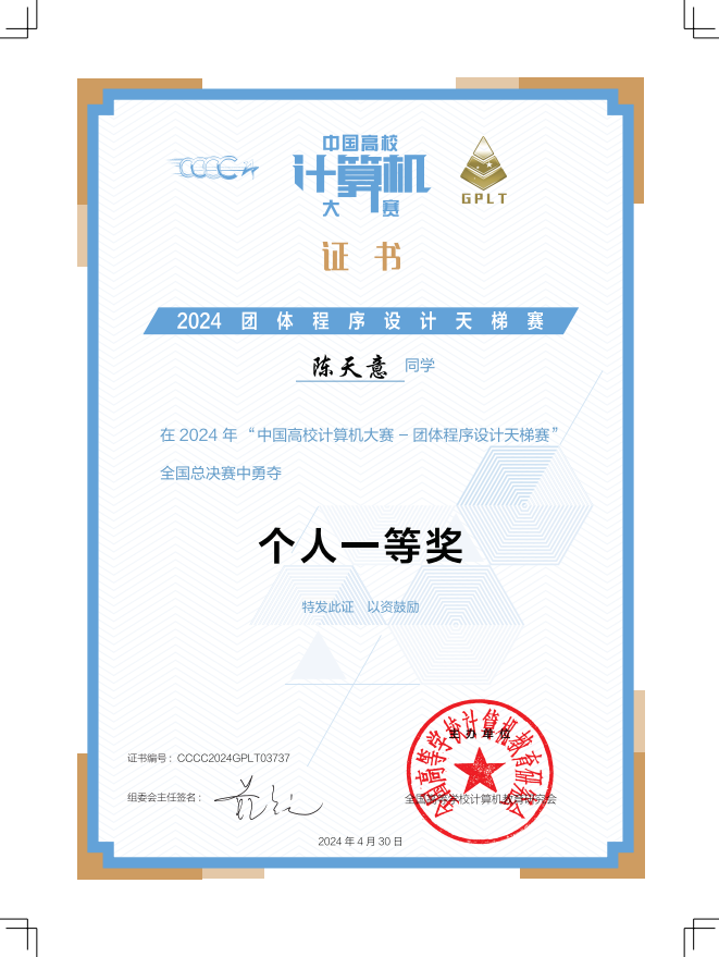 团体程序设计天梯赛于2019年入选全国普通高校学科竞赛排行榜,分为珠峰争鼎(本科组)、华山论剑(本科组)和沧海竞舟(专科组)3个组别。比赛由10名学生组成团队,以个人独立竞技、团体计分的方式进行排名。大赛旨在提升大学生运用计算机编程分析问题、解决问题的能力,培养学生团队合作精神,提高大学生综合素质,丰富校园学术氛围,促进校际交流,提高全国高校程序设计课程教学水平。