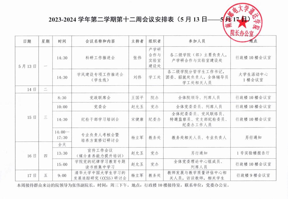 2023-2024学年第二学期第十二周会议安排表
