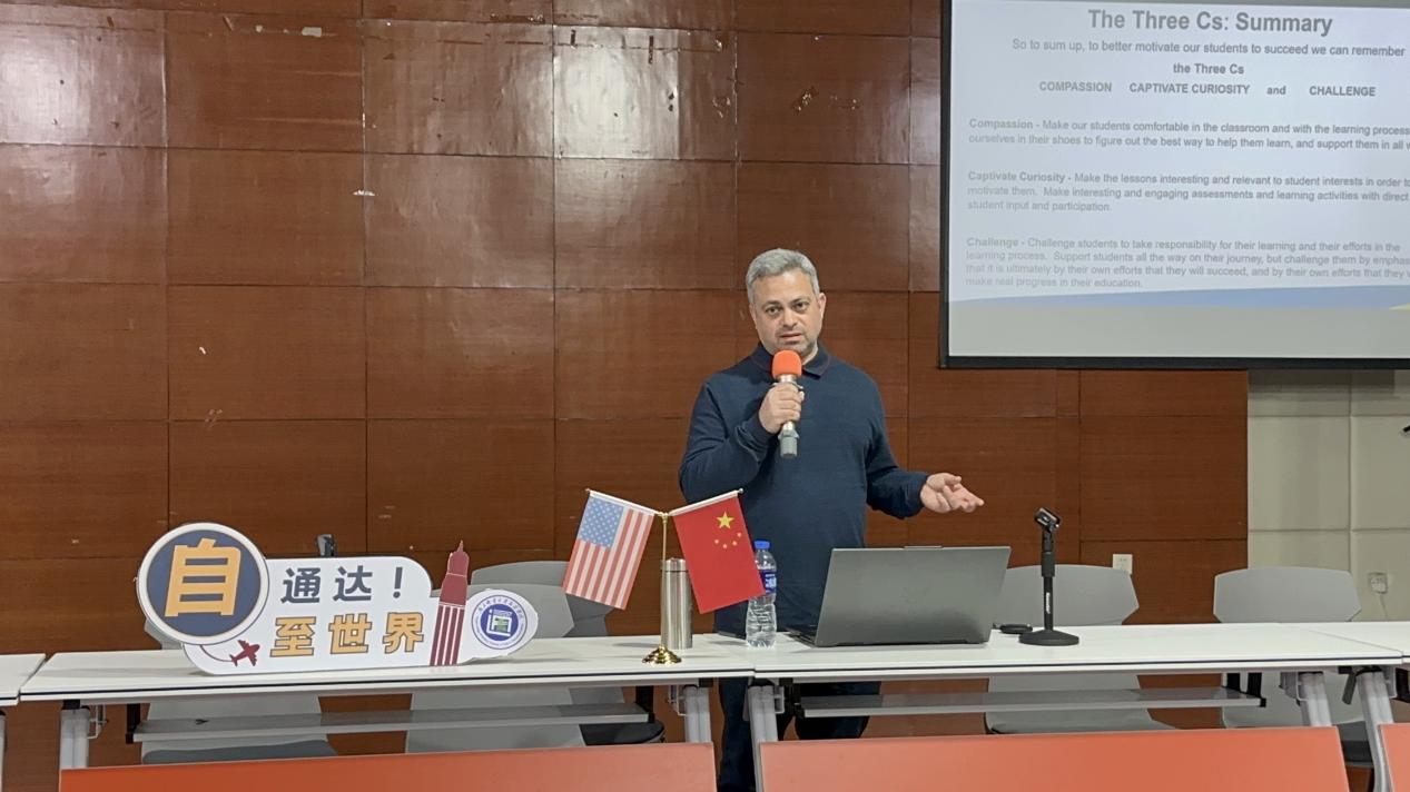 JONATHAN LEMELMAN老师从自身的工作背景开始了本场关于国际教育主题的分享讲座,他从“如何参与国际教育”“听力技巧”“如何锻炼口语”等方面为同学们分享了英语学习经验与英语学习技巧。分享结束后,同学们就如何快速适应国外教育环境、如何巧妙背诵英语单词等问题与JONATHAN LEMELMAN老师进行了交流,方宗祥教授也参与了讨论并认真回答了同学们的相关疑问,给予同学们更多的学习建议。