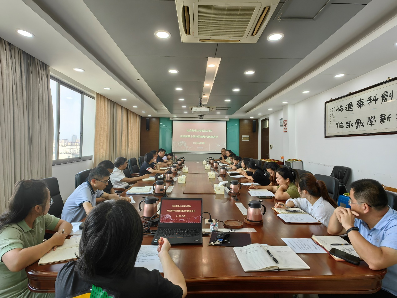 建言献策、共谋发展。会议前夕,学院召开庆祝第40个教师节教师代表座谈会。王院长和赵书记参加会议,教师工作部、工会、教务处、后勤管理处,产学研合作与实验室建设处等相关职能部门负责人与13名教师代表齐聚一堂,交流过去一年的收获。代表们表达了对教育事业的热爱之情,对学院给予的发展平台和各方面支持的感激之情,围绕教学管理、人才培养、科学研究、学生管理、后勤服务等方面,提出了有益意见和建议以及存在的困难。大家一致表示将主动作为、迎难而上,大力践行教育家精神,落实立德树人根本任务,为加快建设教育强国贡献力量。
