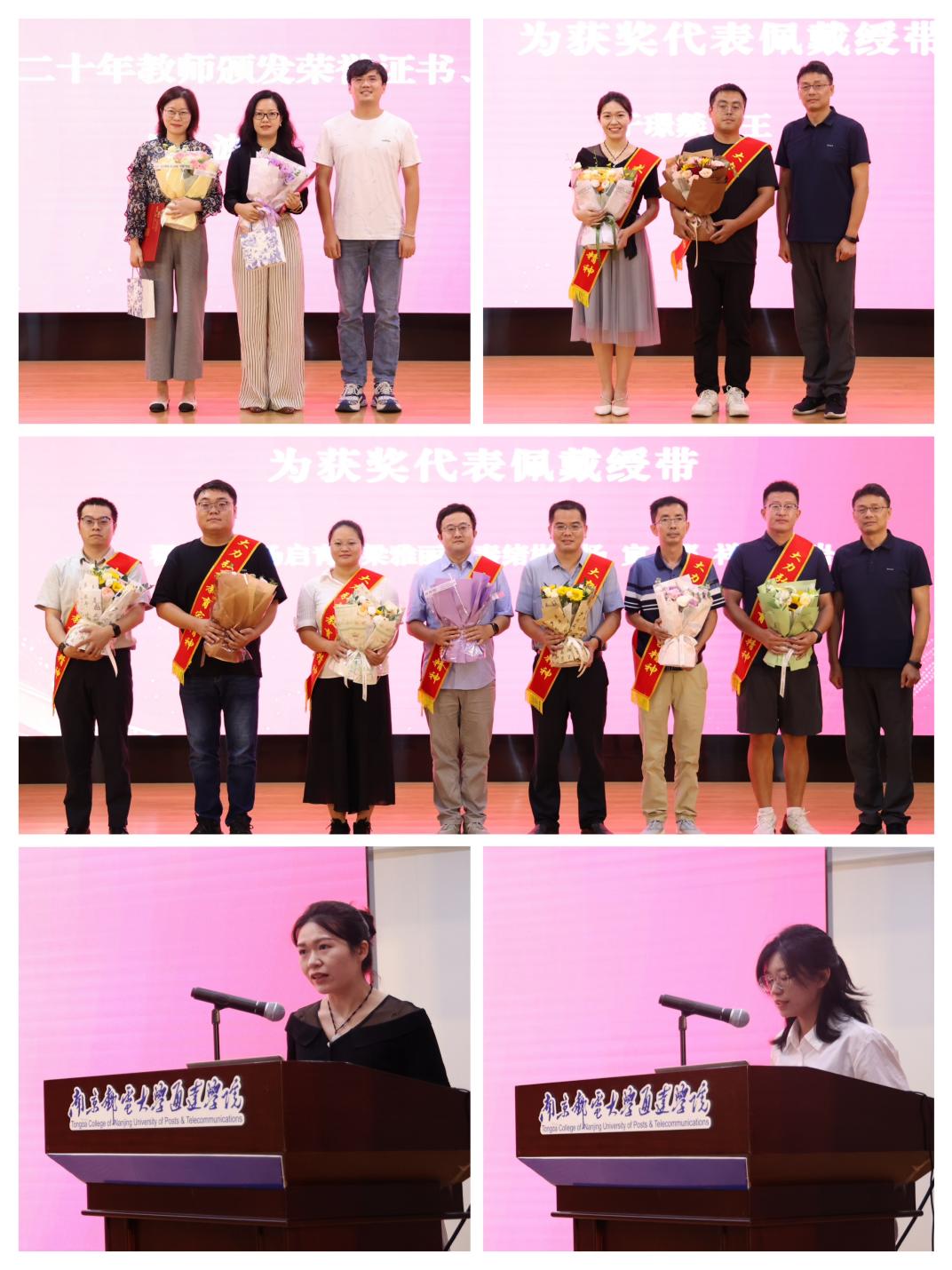 榜样宣传,表彰鼓励。大会对上一学年在人才项目、学科竞赛指导等方面的先进典型予以表彰,副院长吕海蓉宣读了本次教师节庆祝大会表彰名单,副院长张伟为受表彰教师代表佩戴绶带,学生代表们献上鲜花,向他们表示最诚挚的祝贺和崇高的敬意!