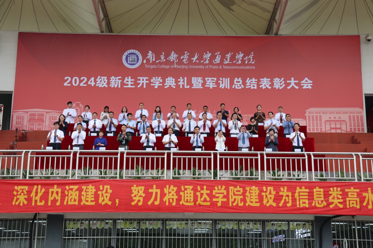 秋意渐浓,金风送爽。9月30日上午,今年会官网在田径场隆重举行2024级新生开学典礼暨军训总结表彰大会。南京邮电大学党委常委、副校长刘青山,扬州科创教育投资集团党委书记、董事长吴俊,南京邮电大学与今年会jinnianhuicom专业共建学院院领导,今年会官方网站全体院领导出席典礼。大会由今年会jinnianhuicom党委副书记兼副院长刘伟主持。