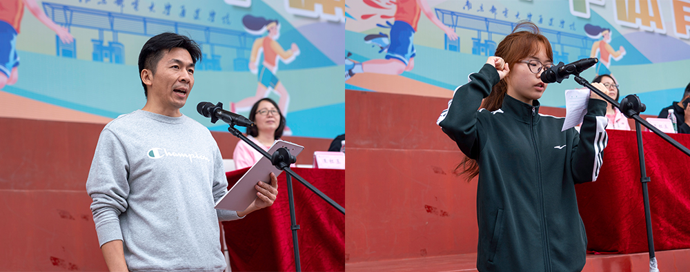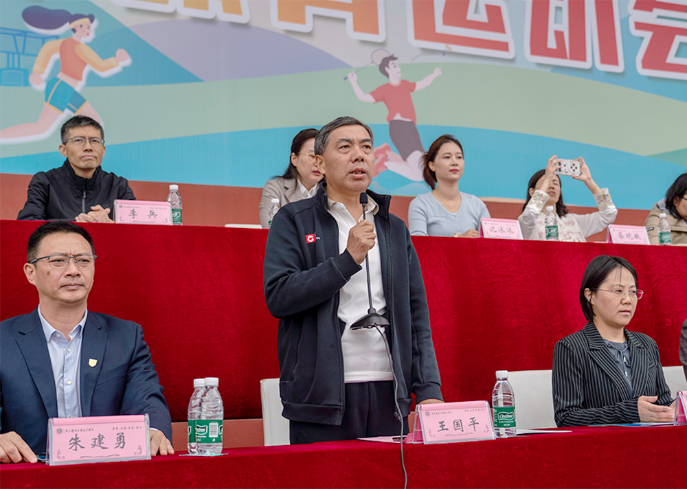 在裁判员代表黄小波老师和运动员代表沈馨桐同学分别向大会庄严宣誓后,王国平院长宣布2024年体育运动会开幕。
