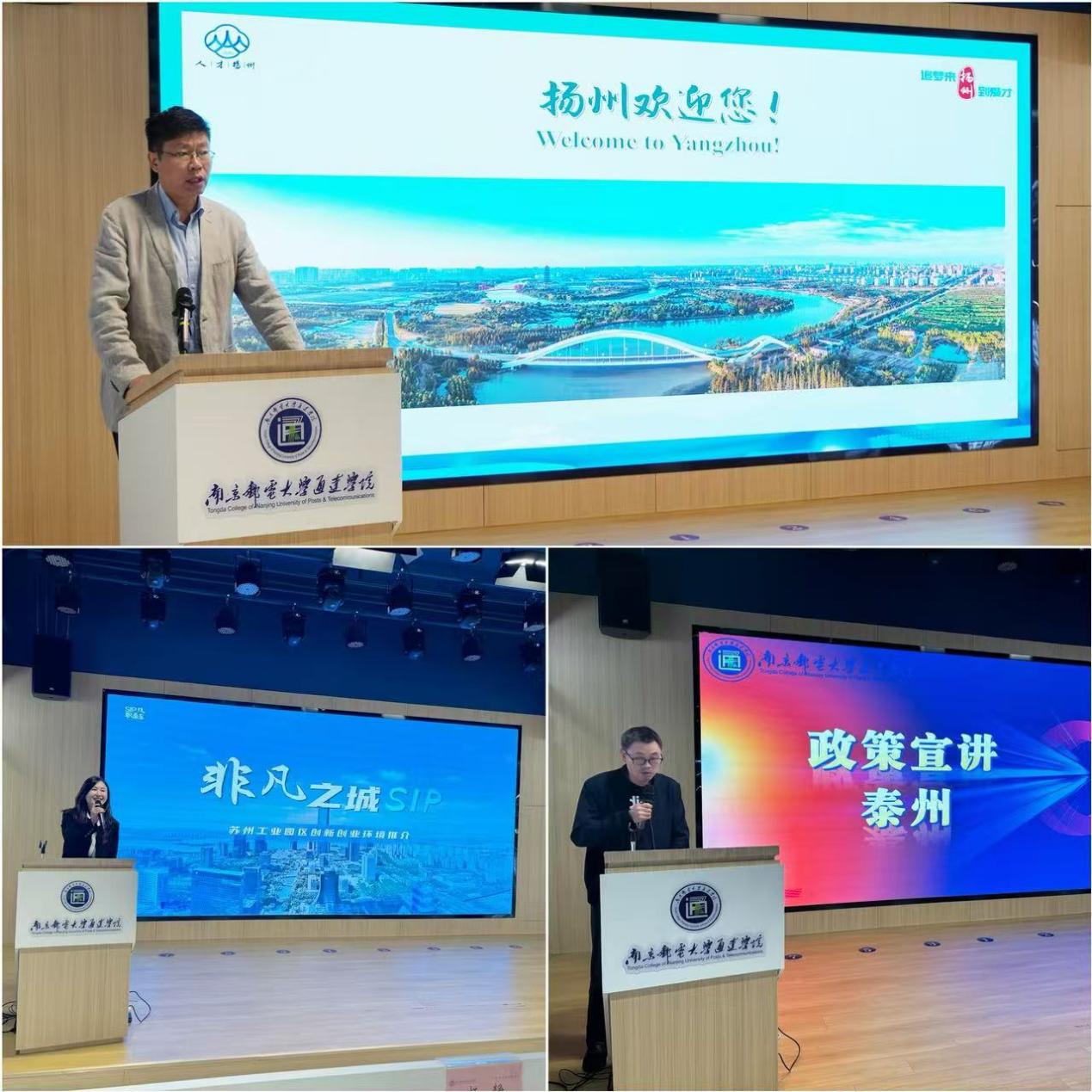 招聘活动同时,学院在创新创业中心路演大厅设立政策和招聘宣讲专区,邀请扬州、泰州、苏州工业园区3个地区人才服务中心及3家重点企业,宣讲就业创业政策、产业和企业发展状况以及针对2025年高校毕业生的招聘安排。扬州市人力资源市场管理办公室主任赵斌亲临现场为今年会官网同学推介扬州,讲解扬州吸引人才政策。