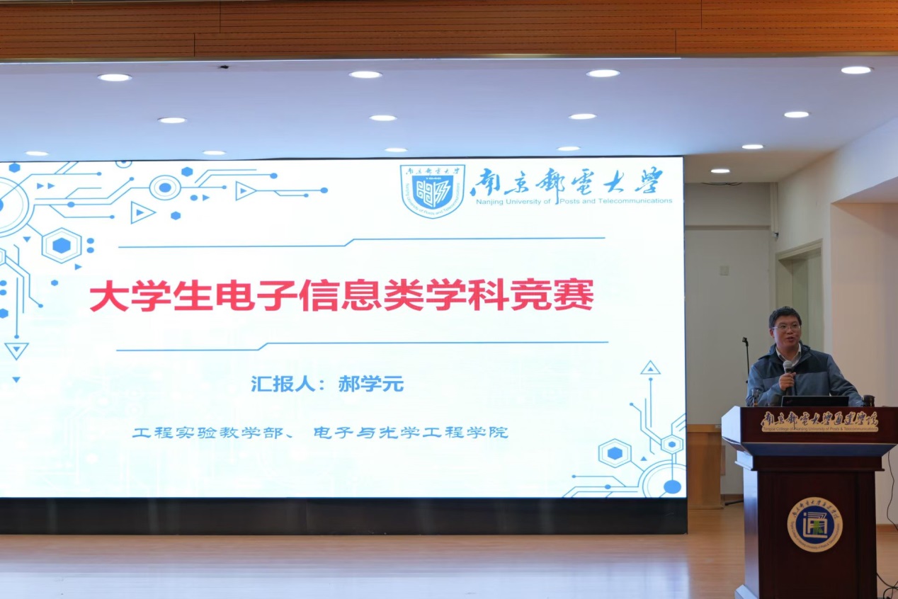 随后,郝学元教授围绕“大学生电子信息类学科竞赛”作了主题报告。郝教授首先介绍了南京邮电大学在电子设计竞赛方面的经验与做法,并详细阐述了如何通过系统的培训体系帮助学生准备比赛。在讲座中,郝教授还重点讲解了电赛模拟综合方向中所需要掌握的基本电路模块,帮助同学们清晰地了解竞赛中的核心要点和技术难点。此外,郝教授还对2023年电子设计竞赛的赛题进行了详细分析,为同学们的备赛提供了宝贵的经验。