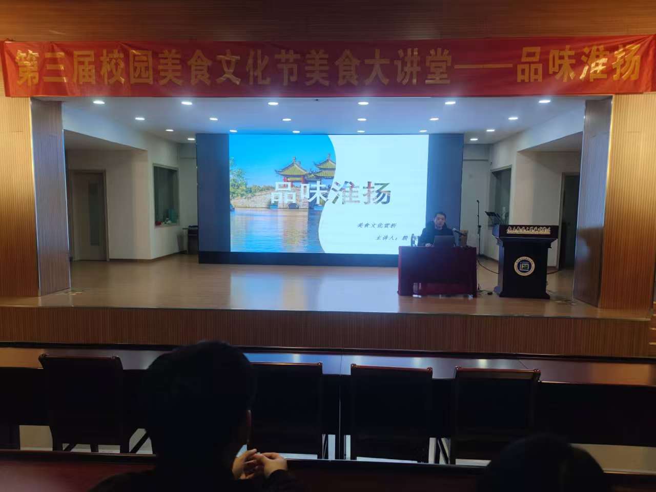 11月29日下午,第三届美食文化节分项活动“校园美食文化节大讲堂--品味淮扬”在实验楼报告厅隆重举办,该活动吸引了近300名师生参加。本次活动主题鲜明,让地方美食文化结合传统节日迸发新的活力,增长了广大师生对传统节日美食文化的学习热情。