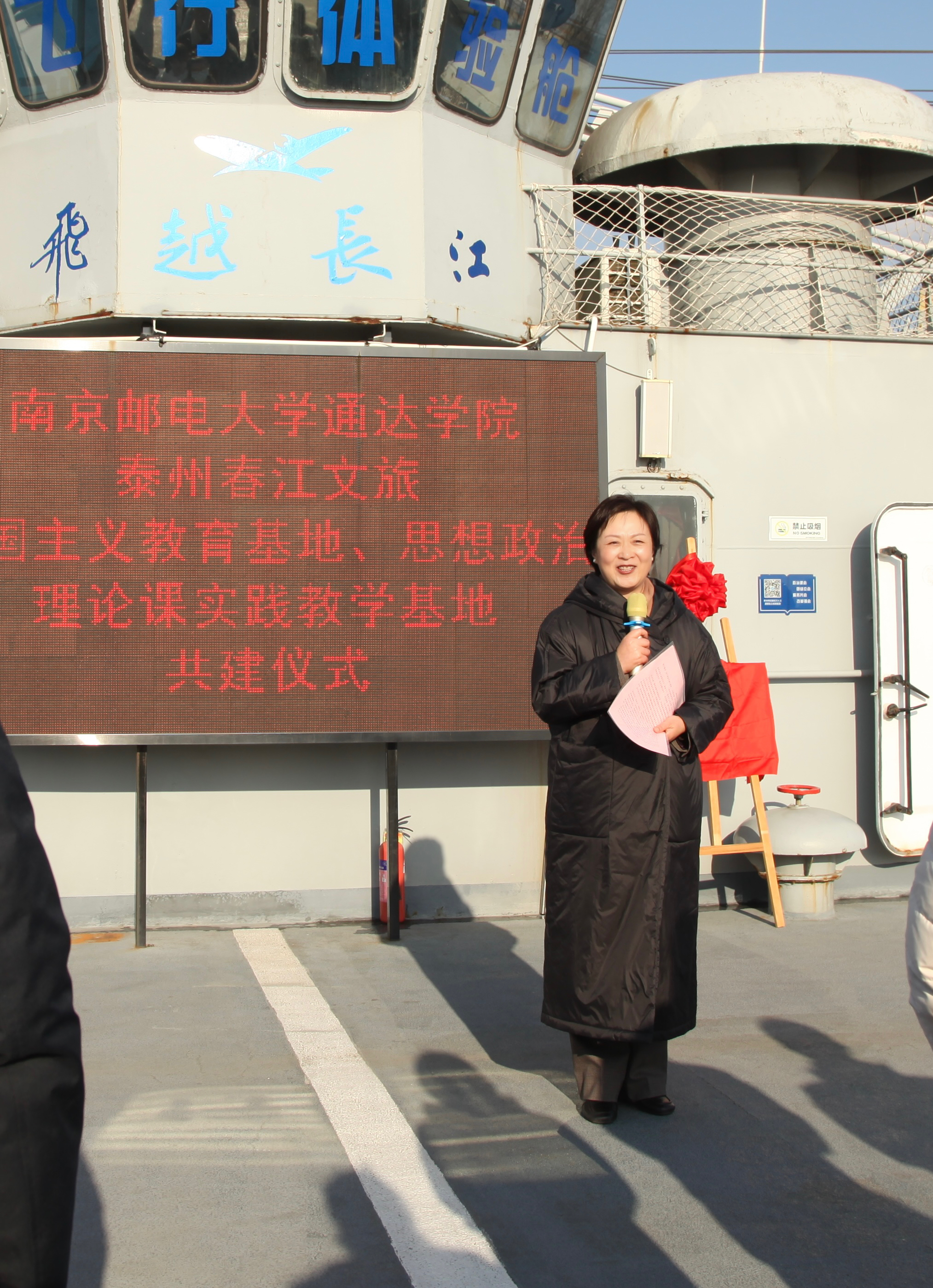 张洁部长代表医药高新区党政领导班子对今年会官网教师代表表示欢迎。她介绍了泰州医药高新区及海军舰艇文化园的基本情况,希望通过与学院共建,整合双方优势资源,注重发掘红色资源的思想内涵,在充分展示基地承载的优良传统和崇高精神的同时,做好结合文章,大力拓展爱国主义教育基地的合理利用渠道和辐射面。